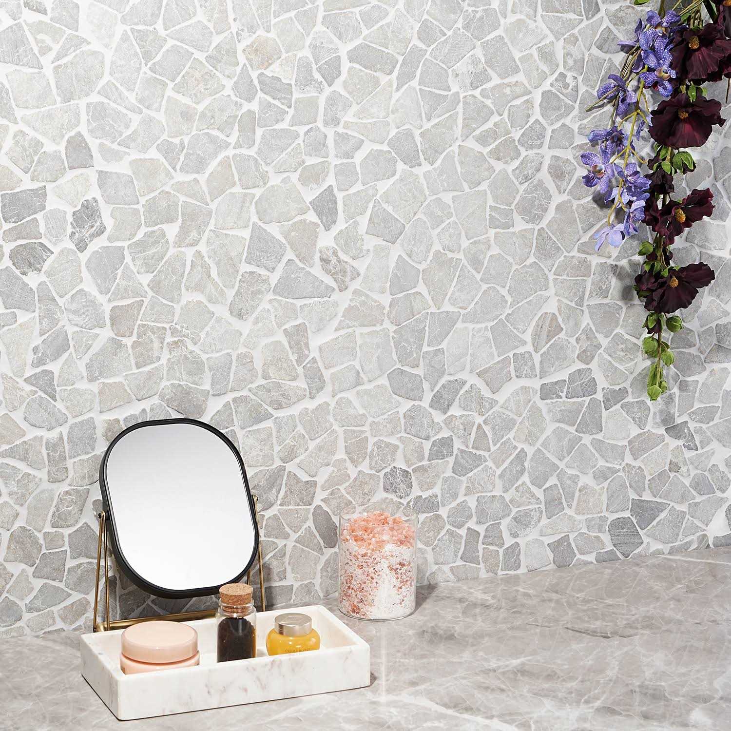 Bond Tile Picturesque Gray Tumbled Mosaic Floor and Wall Tile Sample