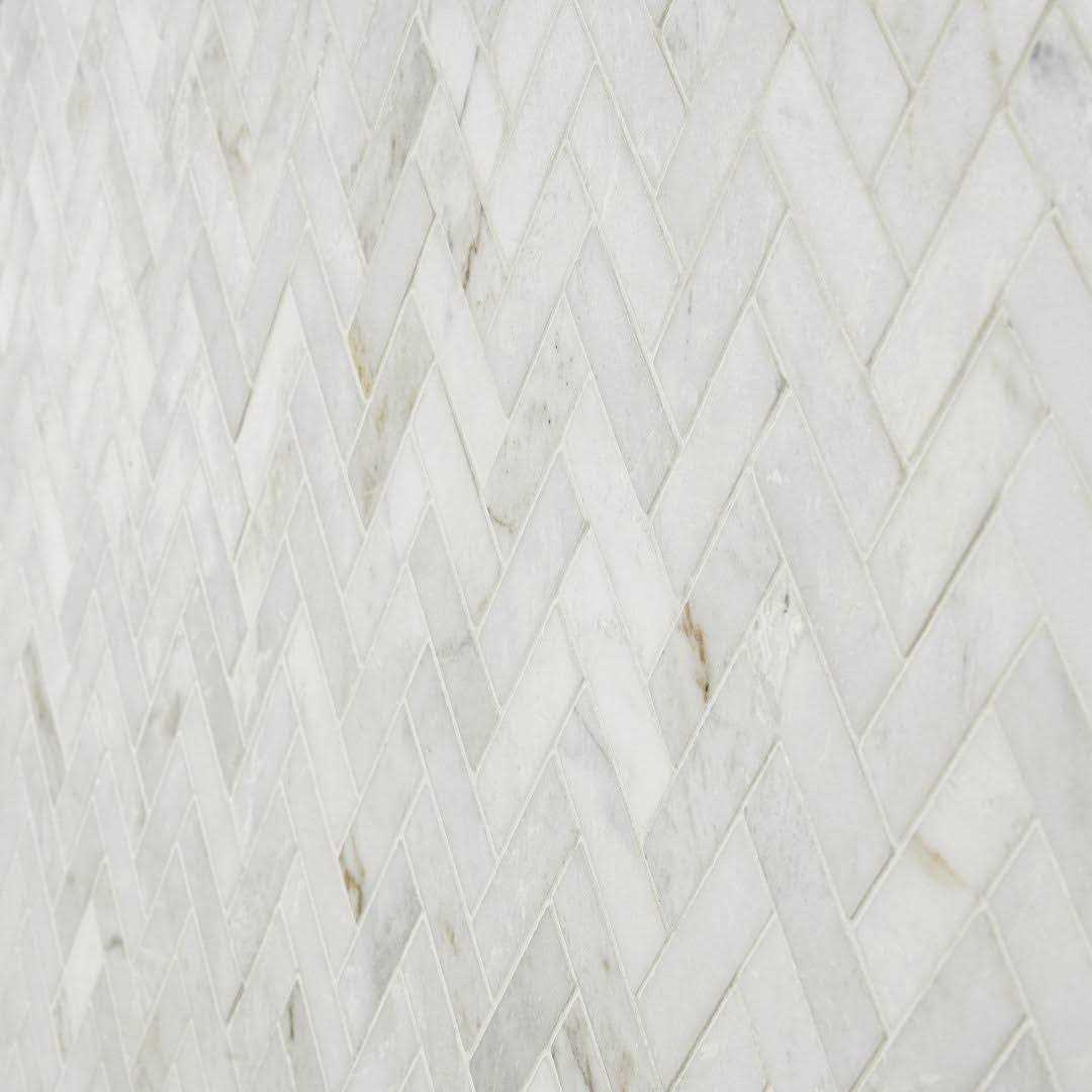Bond Tile Polar White Herringbone Polished Marble Mosaic Tile