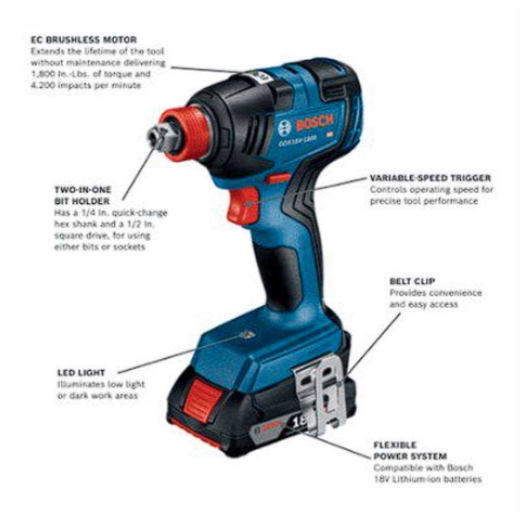 Be the first to review “Bosch 18V 1/4 and 1/2 in. Cordless Brushless Impact Driver Kit GDX18V-1800B12”