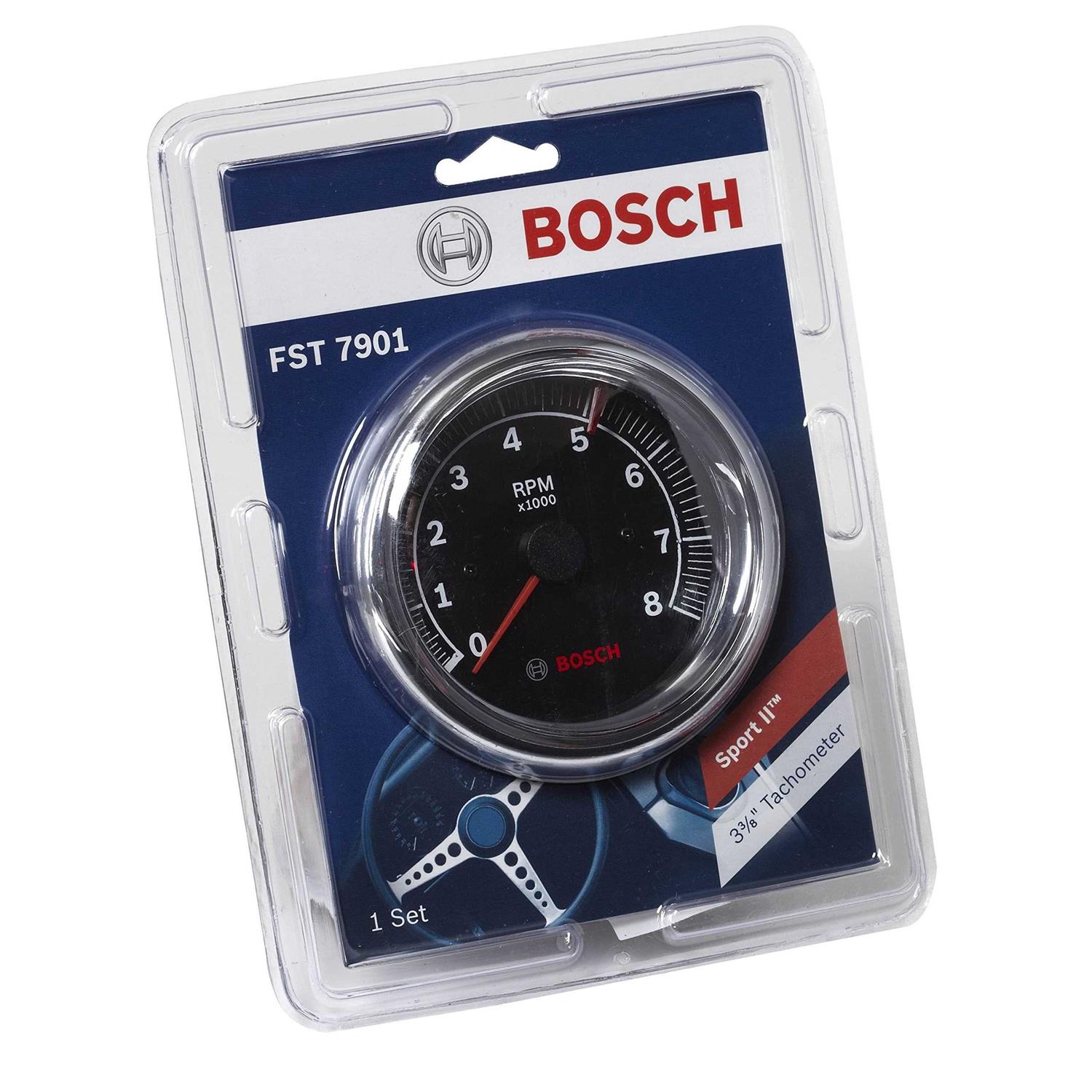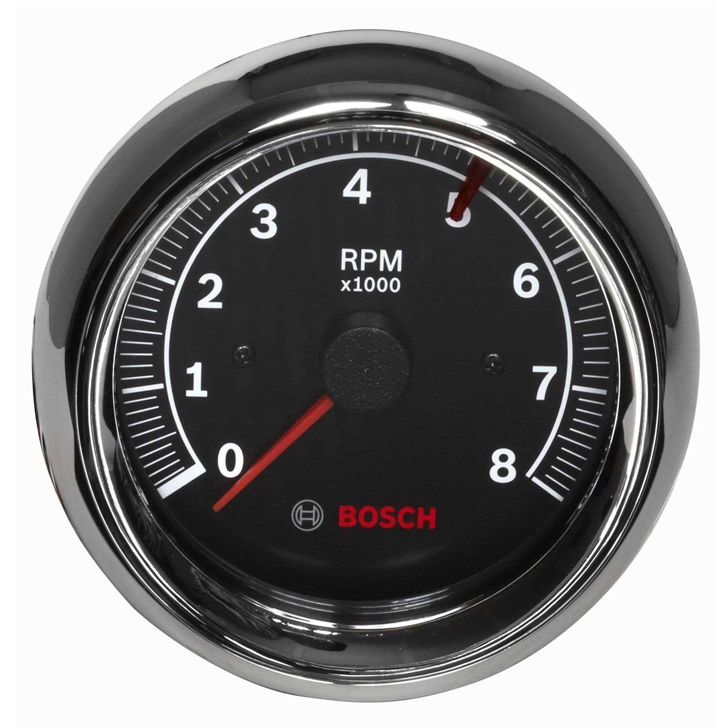 It features a 0-8000 RPM range, driven by an air core motor. The gauge features a 3-3/8″ black dial face with a 250 degree sweep and chrome bezel with mounting hardware. Compatible with 4, 6, and 8 cylinder engines and has an adjustable redline pointer. Functions with breaker points, electronic, and most aftermarket ignition systems (not magnetos). The Sport II Tachometers deliver style and performance while featuring high accuracy with fast needle response for 90% of full scale. Bosch is known for precision, engineering, and innovation. Add style and you have the first-ever line of Bosch gauges, including replacement tachometers, speedometers, temperature and pressure gauges for all applications. Bosch Branded Gauges represent the latest in design following our 100+ year history of Automotive, Industrial, and Racing products.