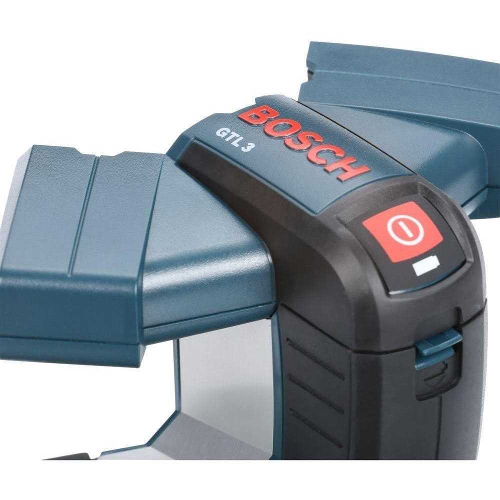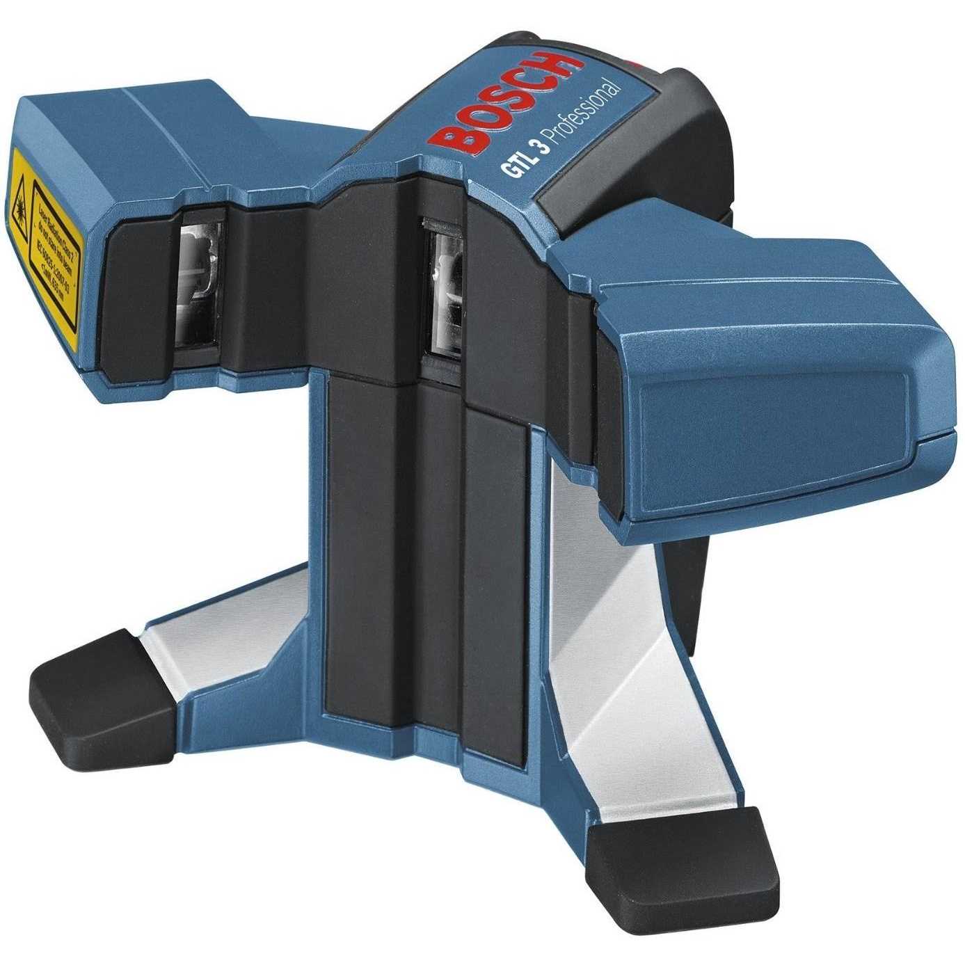 The Bosch Wall/Floor Covering Laser produces highly visible laser lines lines that are easily seen on work surface and on adjacent surfaces in front of tool. Exclusive switchable 45 degree line helps verify proper positioning of square tiles between 0 and 90 degree. Also features magnetic attachment. Interior Range ft. Up to 65, Beam qty. 2, Laser Output Projects 90 degree lines for squaring laser lines are positioned in front of laser base for easy centering over point and precise adjustment Select 0 and 90 degree lines plus optional 45 degree layout line at the press of a button Provides 0, 45, 90 and 135 degree layout from a single setup Model Number: GTL3. Age Group: adult.
