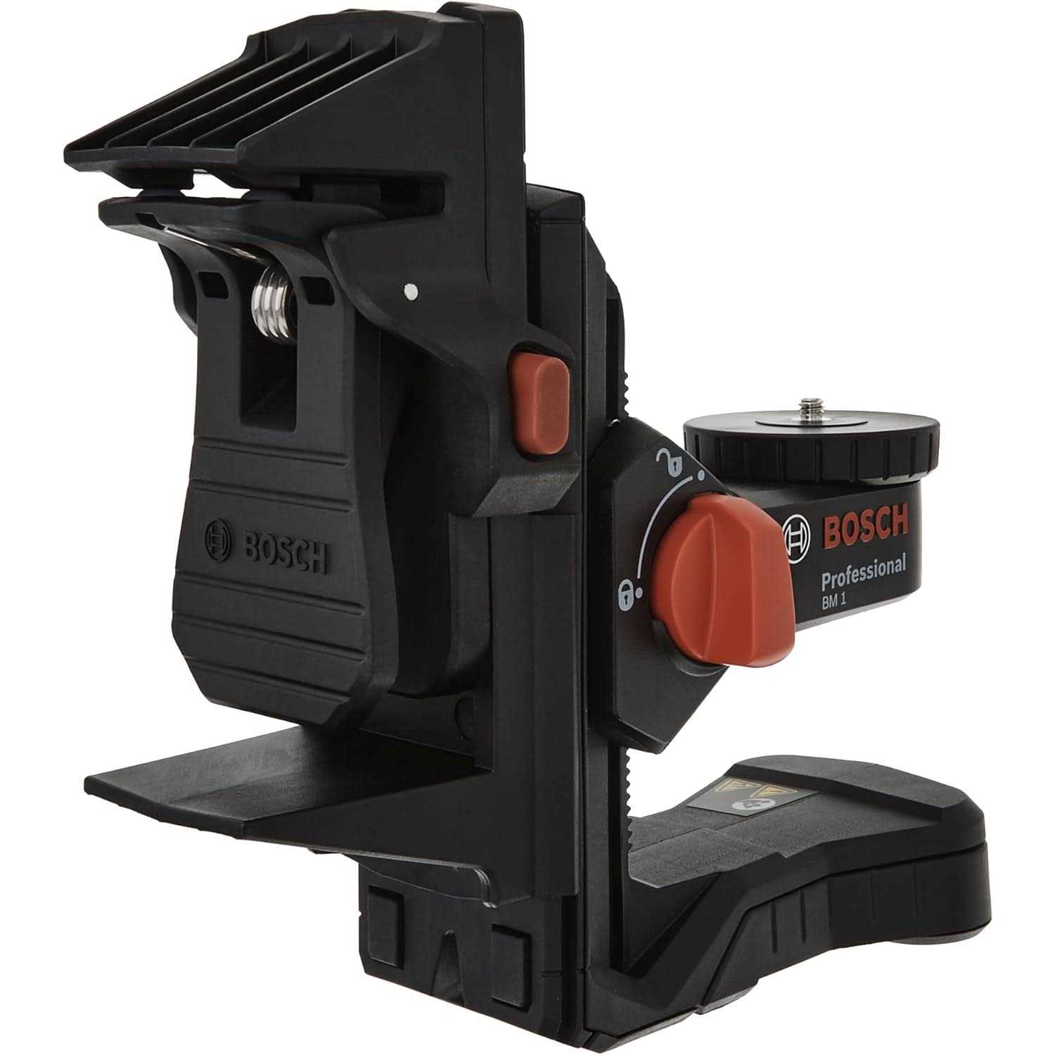 The Bosch BM1 Positioning Device is a versatile mount that works with multiple line lasers thanks to its 1/4-Inch-20 mounting thread. It can magnetically attach to metal surfaces, rest on flat surfaces via retractable feet, or mount to drywall with screws for a wide array of interior applications. The fine adjustment knob allows for precise alignment of the line laser while its built in mounting clip is ideal for ceiling grid applications. The Bosch BM1 Positioning Device is a versatile mount that works with multiple line lasers thanks to its 1/4-Inch-20 mounting thread. It can magnetically attach to metal surfaces, rest on flat surfaces via retractable feet, or mount to drywall with screws for a wide array of interior applications. The fine adjustment knob allows for precise alignment of the line laser while its built in mounting clip is ideal for ceiling grid applications.