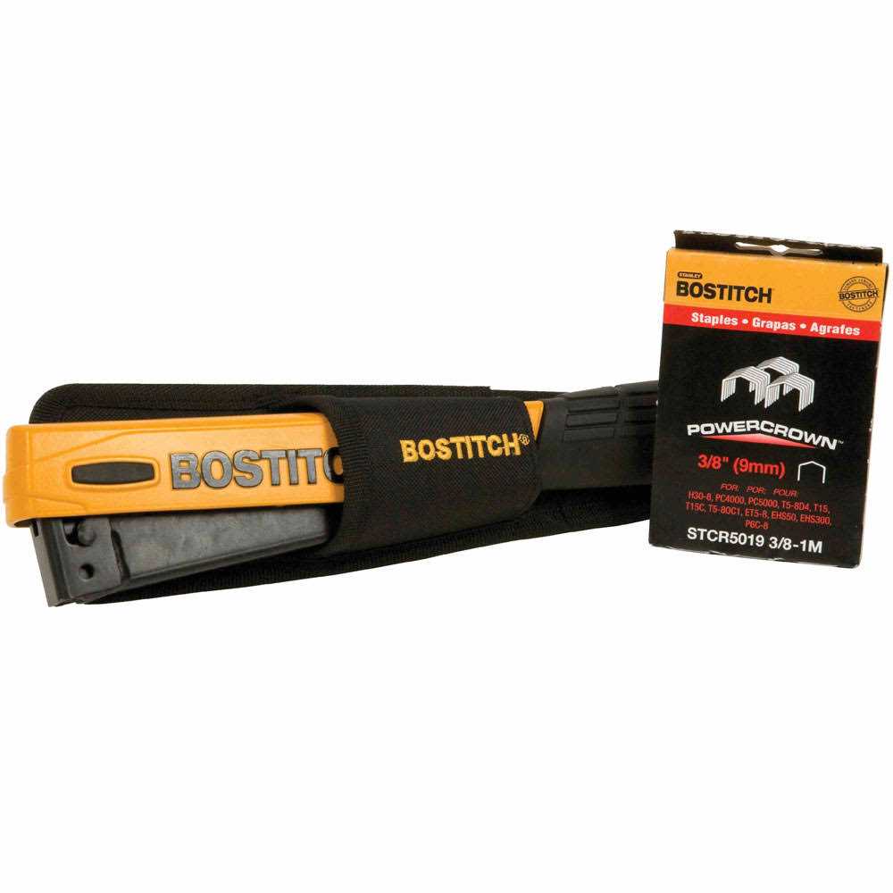 Die cast frame and through hardened steel components for extreme durability Quick-load magazine Tool-free jam clearing The BOSTITCH H30-8 Power Crown Hammer Tacker Manual Stapler is constructed with a die cast frame and through hardened steel components for extreme durability. It features a quick-load magazine, and tool-free jam clearing. A compact stapling tool that swings like a hammer with one-hand operation. For tacking and light nailing where speed is important.