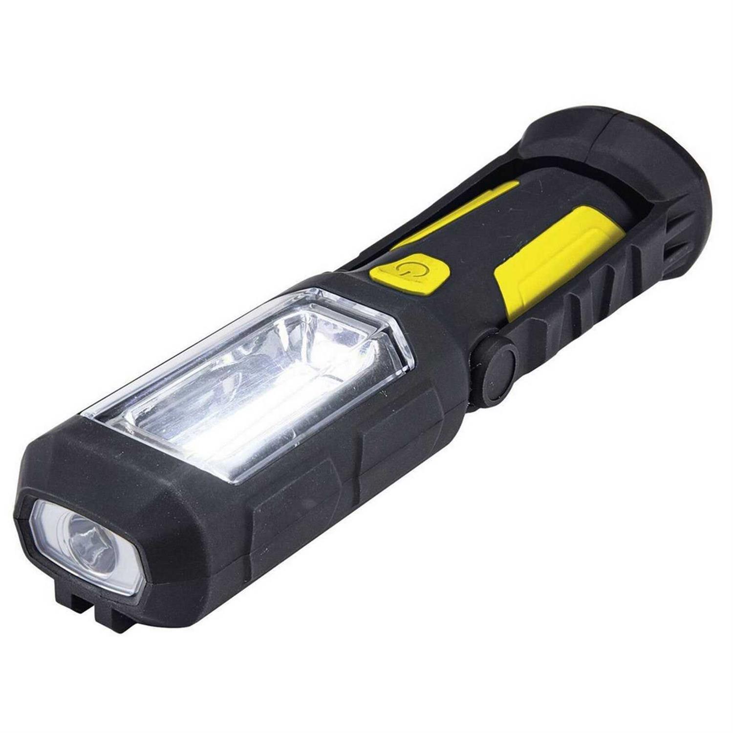 This Portable Foldable LED Work Light fits compactly in your tool kit, unfolds to deliver 175 lumens of brilliant white light. The kickstand base lets you position the light at any angle. Two powerful magnets for solid support on metal objects. A pivoting hook gives more options for light placement. The LED worklight provides both wide area illumination and a narrow flashlight beam. Casts a beam of light up to 60 ft.