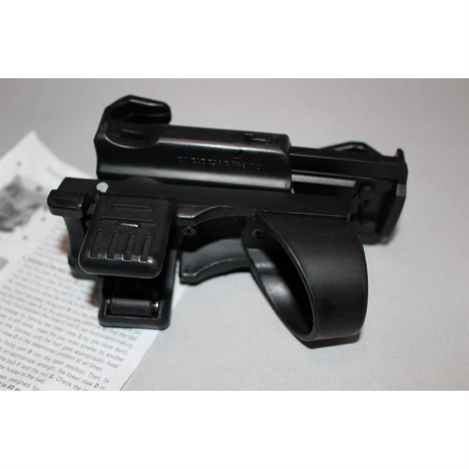 Brite-Strike’s Roto-Loc Articulating Tactical Holster answers the need for the officer who desires a holster which can be positioned at various angles to facilitate the draw or greater comfort. The positive ratchet allows the user to position the holster at any angle desired through a full 360 degrees and have it stay there. This proven method has been used with baton scabbards for years and is now available for the Basic Tactical Lights. To use the light in a hands free mode, place the light back in the Roto-Loc holster, set the precise angle to aim the beam in the desired direction. Locking jaw belt attachment system 360 degne Roto-Loc Positive Ratchet Flashlight is NOT included.