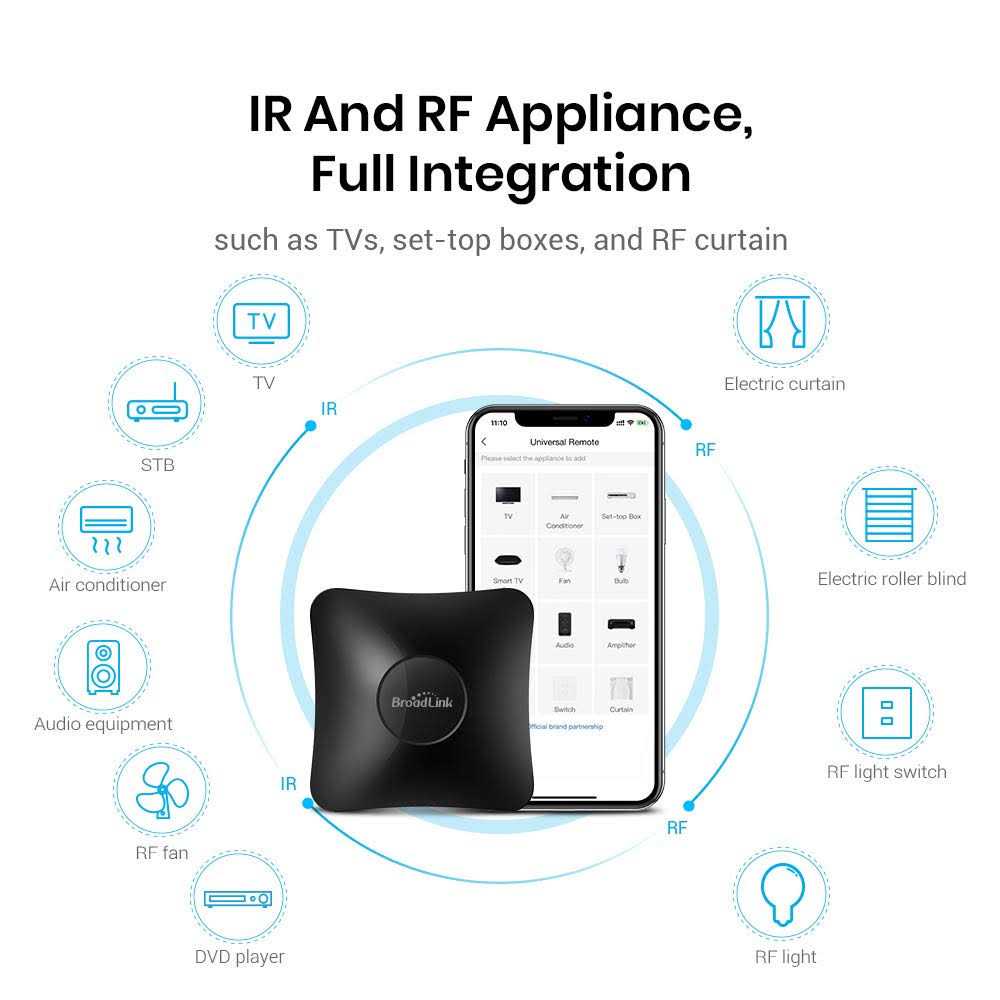 Broadlink RM4 Pro Smart Ir/rf Remote Control Hub with Sensor Cable-WiFi Ir/rf Blaster for Smart Home Automation TV Curtain Shades Remote Works