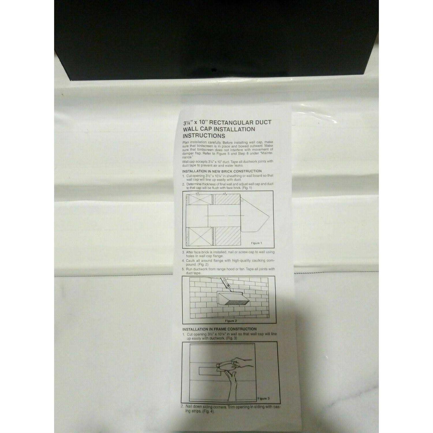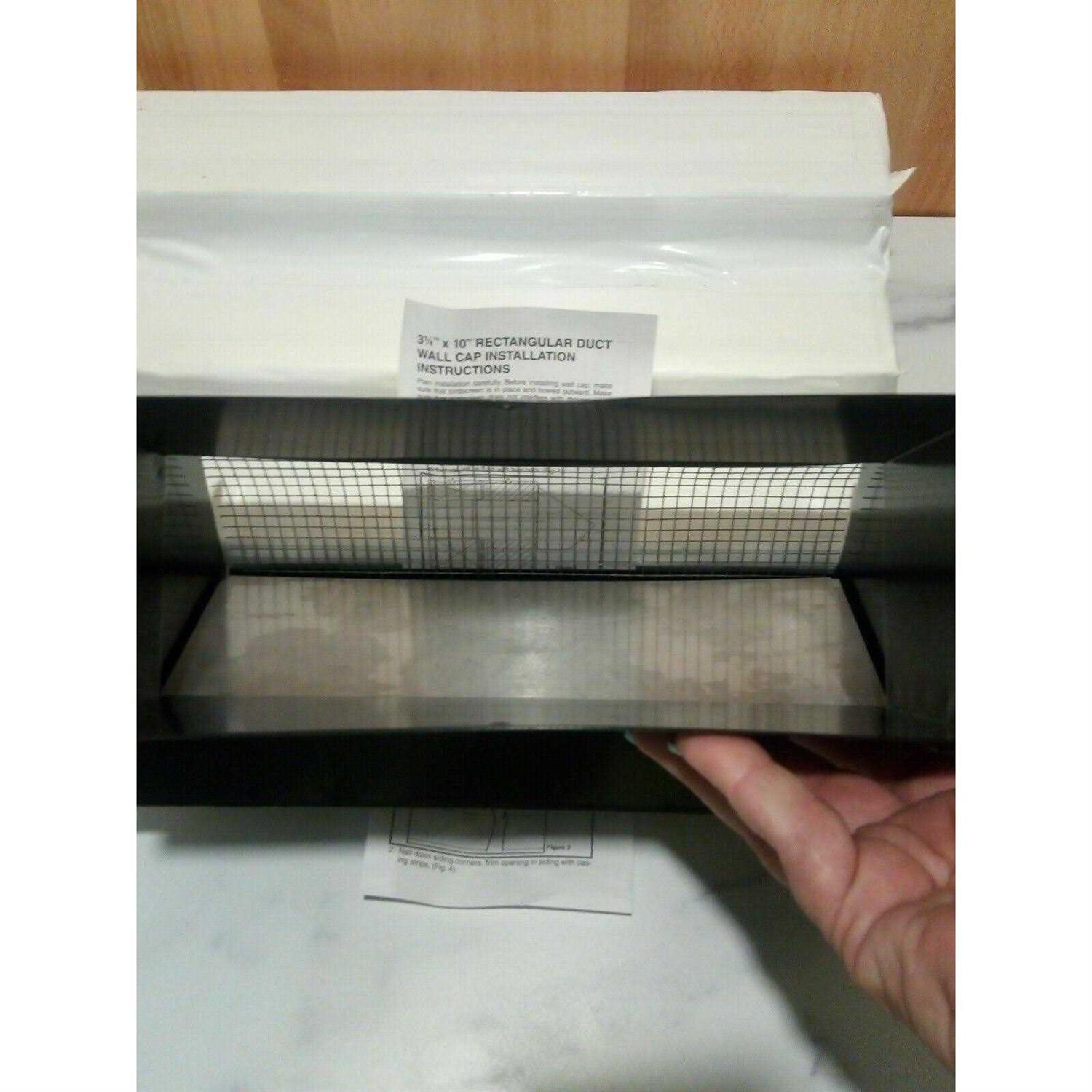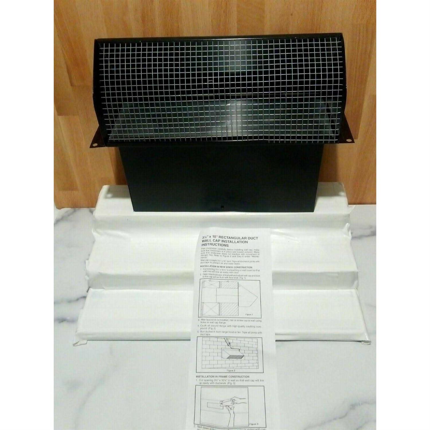 Vent steam out of the room with this Broan wall cap. It’s suitable for 10-inch ducts and includes a spring-loaded backdraft damper to help minimize noise, prevent water from getting in and eliminate the risk of animals entering. This Broan wall cap has a baked black enamel finish to protect the steel from the elements. Compatible with standard 3.25′′ x 10′′ duct For use with your existing equipment. Made for long-lasting use Features a built-in spring-loaded backdraft damper and a bird screen. Constructed of high-quality materials The wall cup is made of 24-gauge CRCQ steel and comes with a baked black enamel finish.