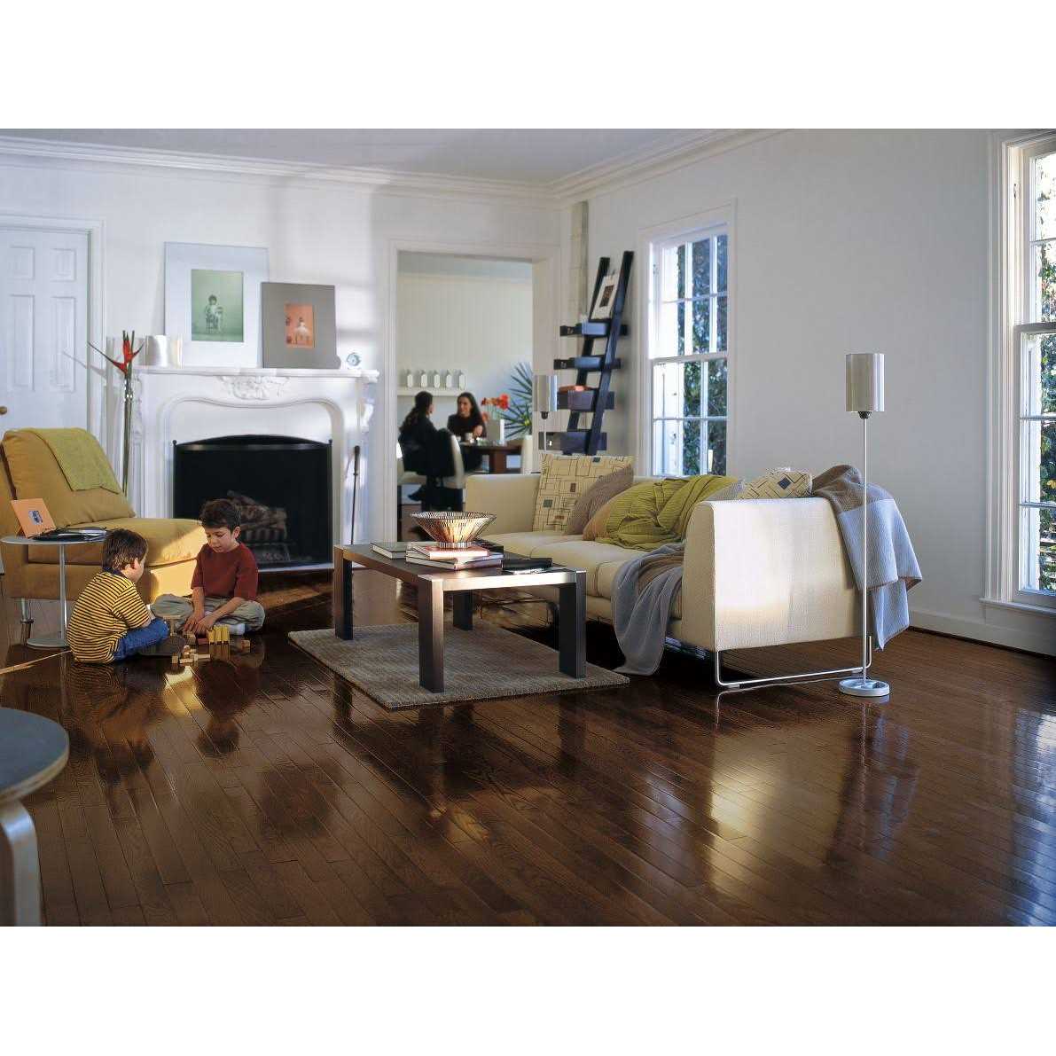 The Natural Reflections 5/16 in. product collection is an eco-friendly alternative to traditional 3/4 in. solid hardwood floors and is proudly made by Bruce (Beverly, West Virginia). Made in a thinner 5/16 in. structure, these floors use approximately 50% less raw material than traditional 3/4 in. solid products giving you the same beautiful, solid hardwood visual and performance with some truly unique advantages compared to 3/4 in. thick options. Unlike most factory-finished hardwood floors which have a bevel along the upper edges and ends of the floor, the Natural Reflections 5/16 in. thick solid product from Bruce features a Square-edge, Square-end profile. Unique in the industry from Bruce, this gives you much more of a traditional sand-and-finish or “site-finished” visual with all of the advantages of a heavy-duty, factory-applied finish. And, because these floors come in the low-profile 5/16 in. thick format, they can be installed using either a staple-down or glue-down method and don’t dramatically increase the height of your finished floors. In addition, unlike most traditional 3/4 in. solid floors, they can be glued-down directly to concrete subfloors (see Installation Instructions for full details). Color: Medium.