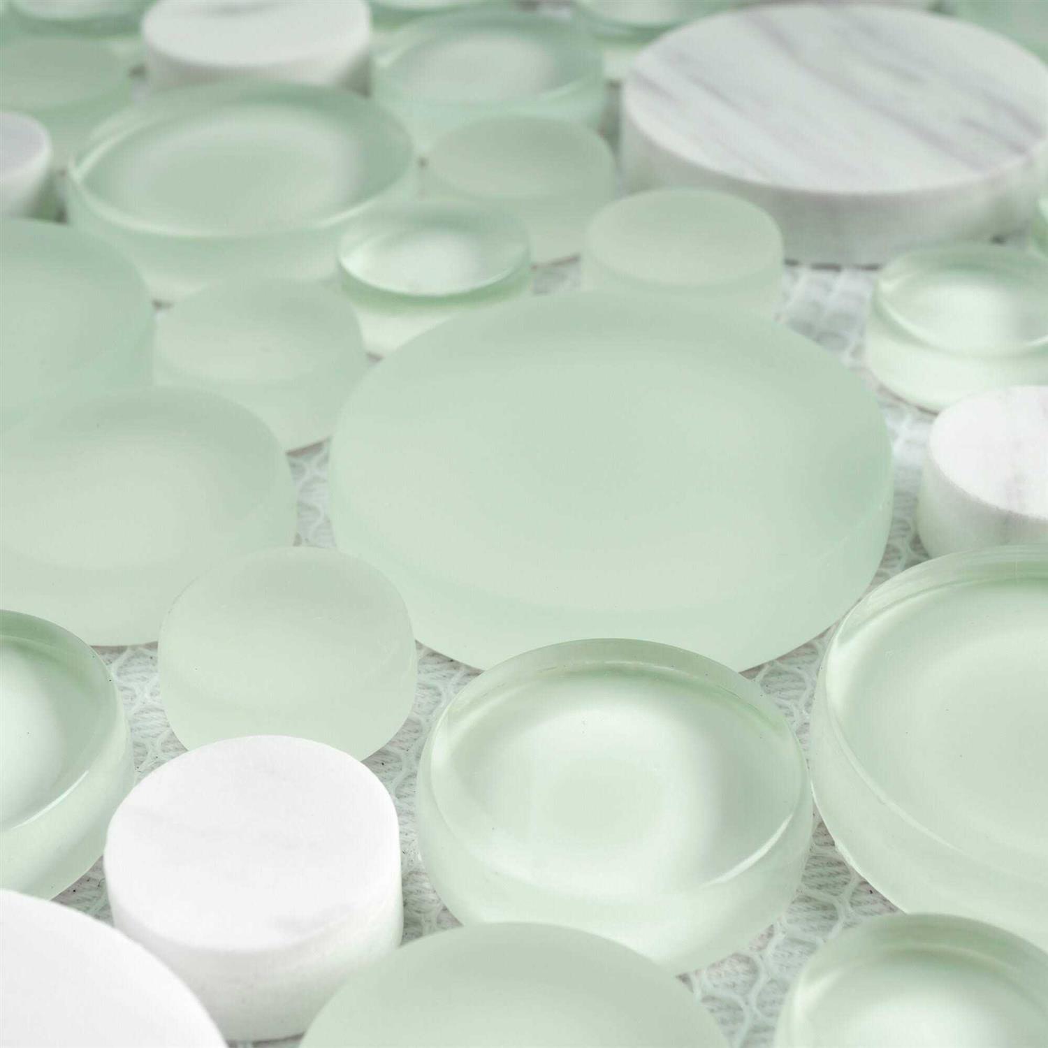 Supreme tile bubble art random marble look mosaic wall tile features a glossy patterned design. High-quality glass and marble transform your home into a magnificent space. The round creates beautiful layouts and designs when mixed and matched with other colors. It also features low maintenance and easy clean will make your life much easier. This premium tile is a perfect and elegant look for your living room, kitchen, and bathroom.
