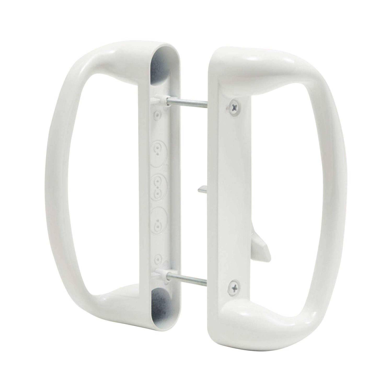 You can easily replace your old, missing, or damaged Mortise, hook-style door handle with this sliding patio door handle set that includes front and back sides with 2 screws. The handle has a 3-15/16-inch hole spacing and is made to fit 1-1/2-inch to 1-3/4-inch thick doors. Our handle is white in color and is made with sturdy diecast material. A Phillips-head screwdriver is needed for assembly. Color: One Color.