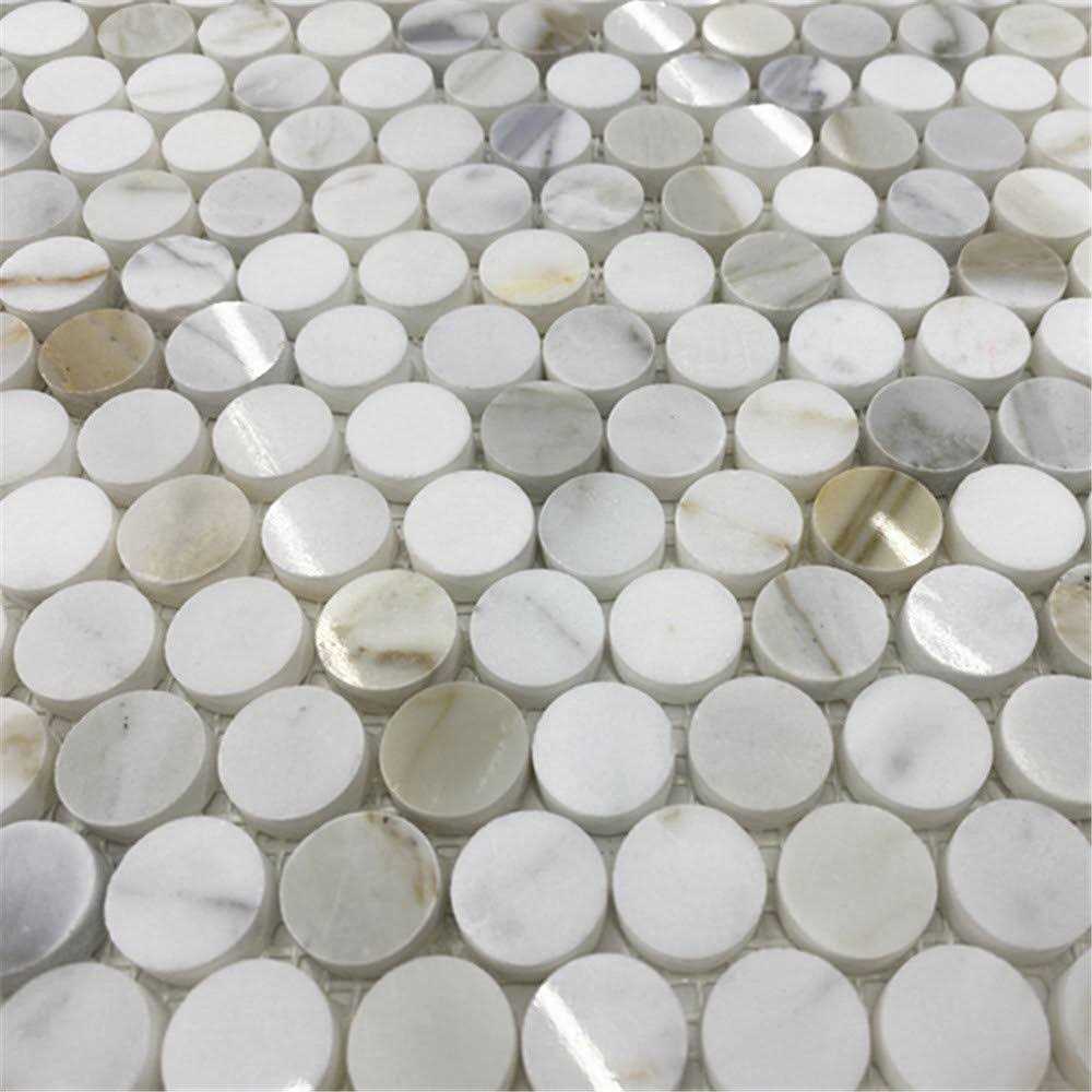 Stone Center Online Calacatta Gold Italian Calcutta Marble Penny Round Mosaic Tile 3/4 inch Polished