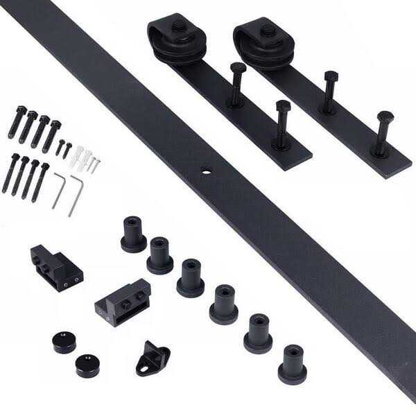 Calhome sliding rail hardware and barn door kits contain everything needed to transform any doorway into an elegantly beautiful passageway between spaces. The front-mounted hardware and exposed rollers give it a timeless look that complements any. Contemporary, rustic, or industrial decor. All hardware is constructed of high-quality powder-coated steel. Each piece of wood has natural knot patterns which make every door unique. The design provides a stunning focal point for any space while also providing high functionality. This easy-to-assemble door takes minutes to put together and will add a touch of farmhouse chic to any space.