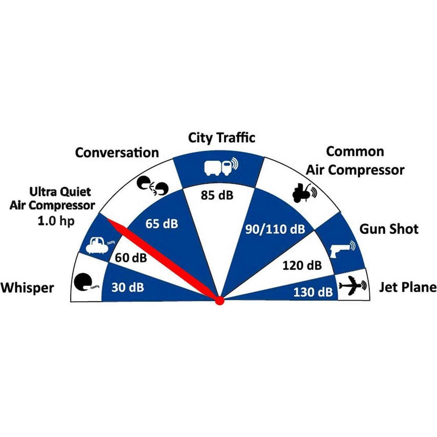 The California Air Tools 8010A ultra quiet, oil-free and lightweight air compressor is designed to be one of the quietest air compressors in the industry at a noise level of just 60 dB. The powerful 1.0 HP motor operates at only 1680 RPM, creating less noise and less wear. The oil-free dual piston pump system is engineered for high performance and durability. This pump is designed to have a life cycle before wear of 3000+ hours compared to other comparable air compressors with life cycles of 500 hours or less. The oil-free pump allows for use in a variety of temperatures and uneven terrains. The large 8.0 gal. Rust free aluminum air tank is lightweight (38 lbs.), and the wheel kit makes it very easy to transport. This air compressor is ideal for anyone working inside where noise is a major issue.