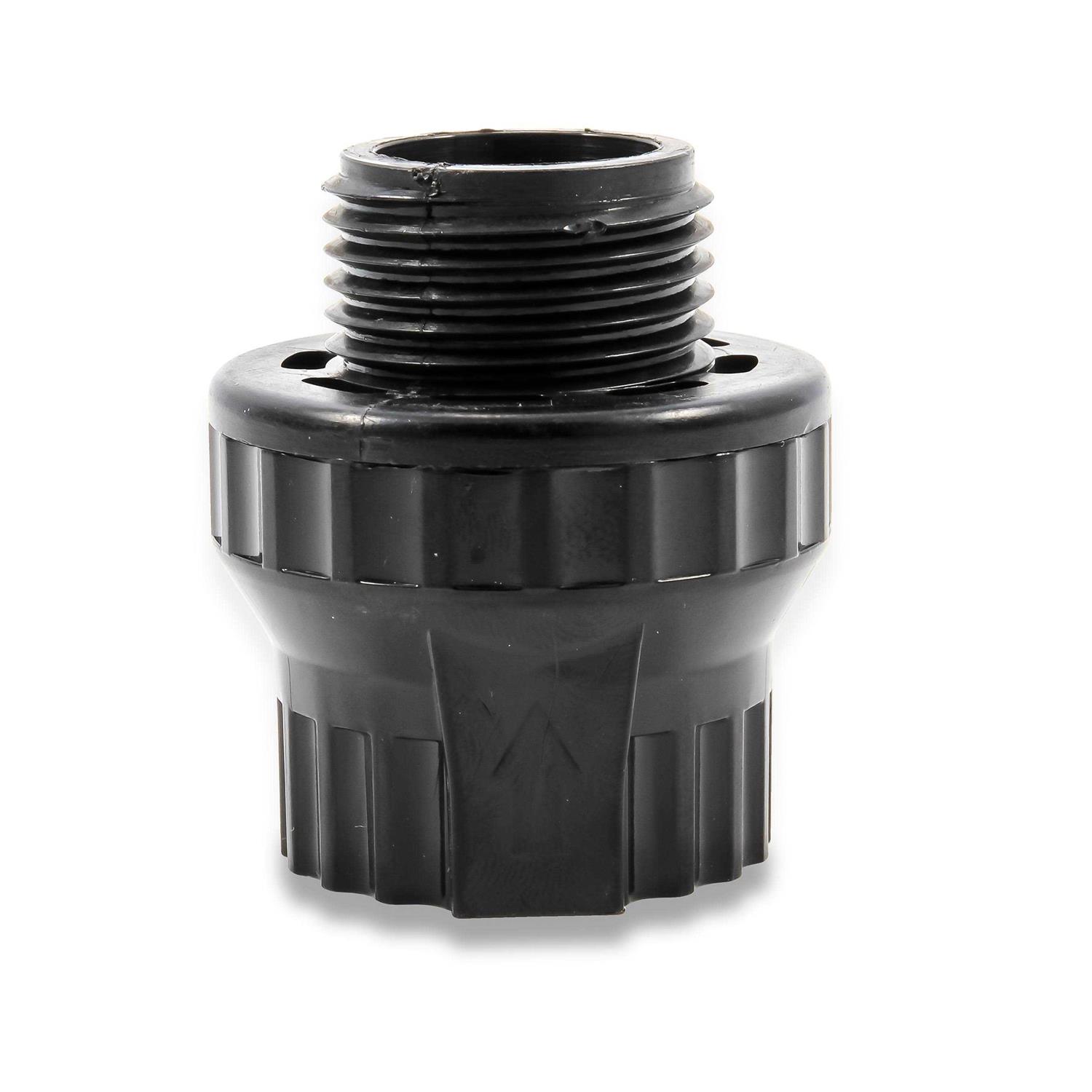 - Transparent polycarbonate fitting attaches between sewer hose and RV