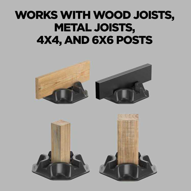 - accepts 4×4 and 6×6 posts & 2×4, 2×6, and 2×8 wood joists, and 2 in. metal joists LIGHTWEIGHT