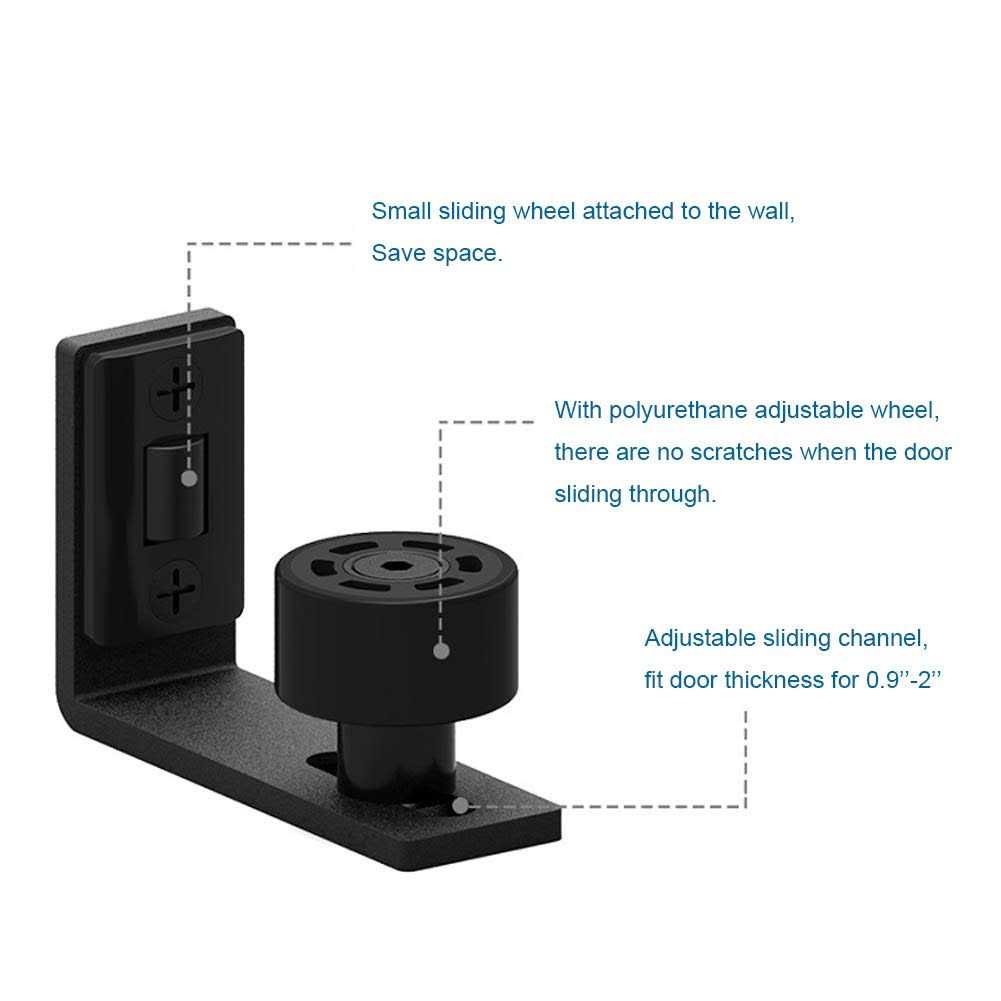 This product has been specially designed to allow for the barn door bottom bracket sit completely flat on the floor. Both side have roller, protect the door. Make every slide smooth and quite.
