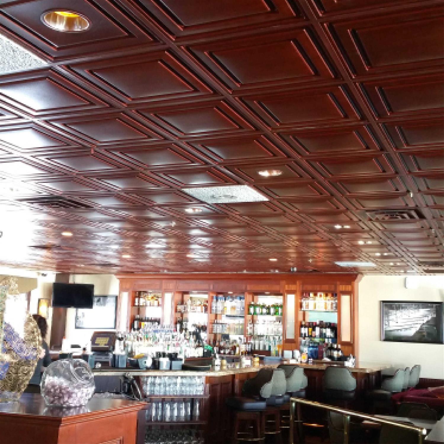 Stratford Black Feather-Light Ceiling Tiles are unlike any ceiling tile you will ever see or feel. When you take them out of the box you will be surprised by the minimal weight of their Feather-Light construction. Ceilume Stratford tiles are formed from a thin sheet of vinyl that is only 0.013 in. thick about the thickness of a business card. But the Stratford’s geometric design combined with the inherent strength of vinyl makes these tiles rigid, durable and easy to install. The Stratford Black Feather-Light Ceiling Tiles are not at all like the old mineral fiber tiles you’re used to seeing and that’s a good thing. They don’t generate dust, they’re unaffected by moisture, they don’t harbor mold and they’re easy to cut. Their black finish is refined, pure, and easy to clean. Place them in your ceiling grid and you’ll be thrilled by the way the Stratford improves the look of your room.