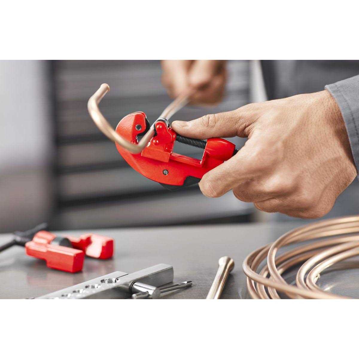 This heavy-duty flaring kit includes a heat-treated tube cutter with deburring tool, 2 piece flaring tool set and 4 flexible tube benders. The tube cutter can handle tubing as large as 3/16 in. – 5/8 in..