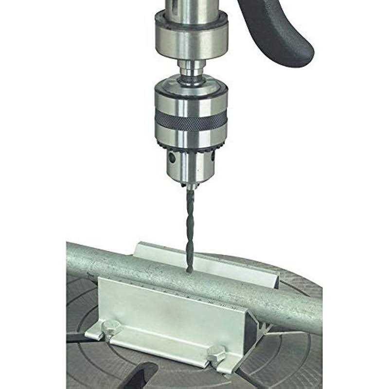 Simply set this self centering jig in your drill press, bolt it down and the bit will always hit center with no marking or center punching required! The self centering jig takes the guesswork out of centering tubes, pipes, dowels or any other round stock. The jig features a heavy duty extruded aluminum construction and convenient ruler markings.