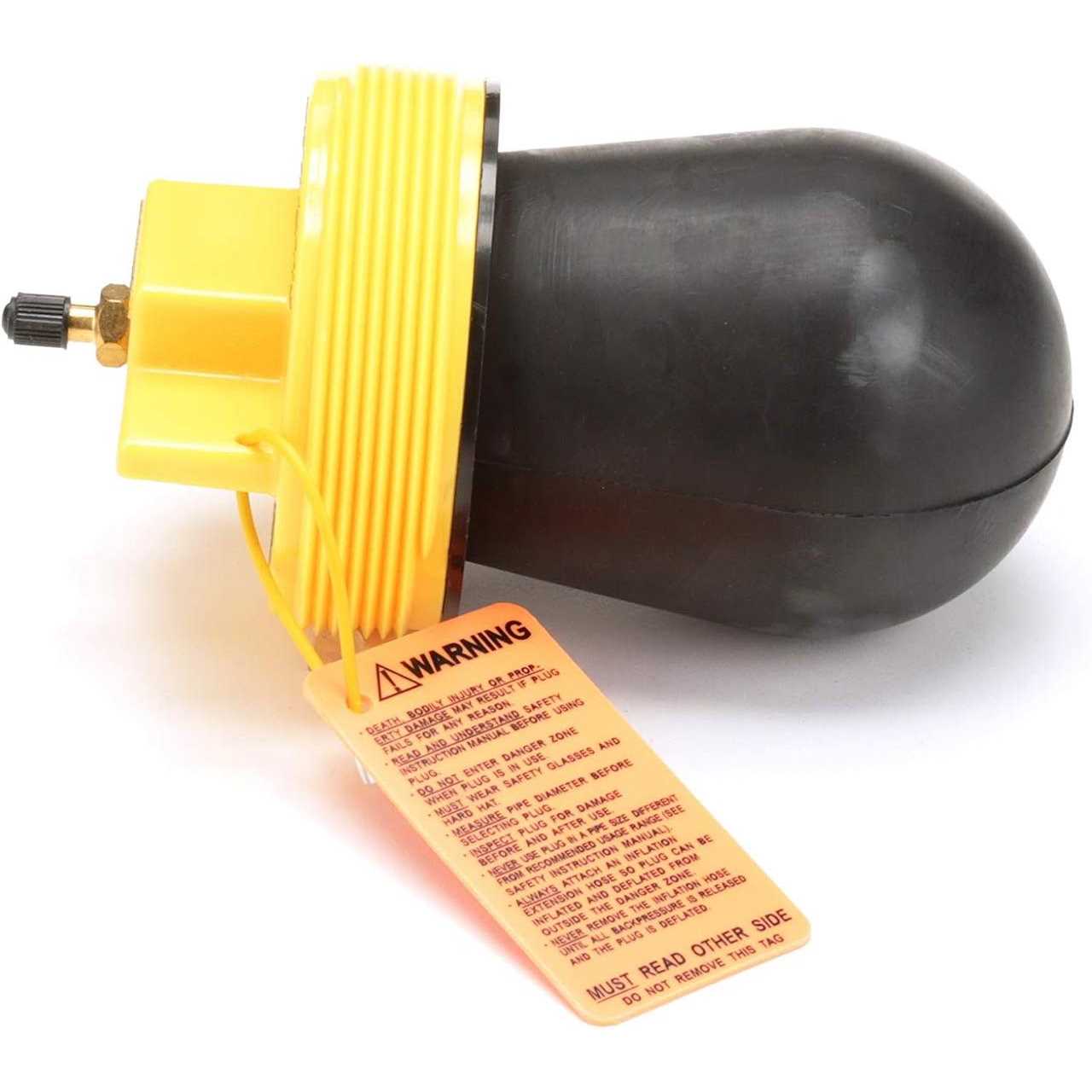 Threads into test tee, eliminating water backsplash. Removable snifter valve inflation fitting is replaceable. Made from long-lasting natural rubber. Seals both cast-iron and plastic pipe.