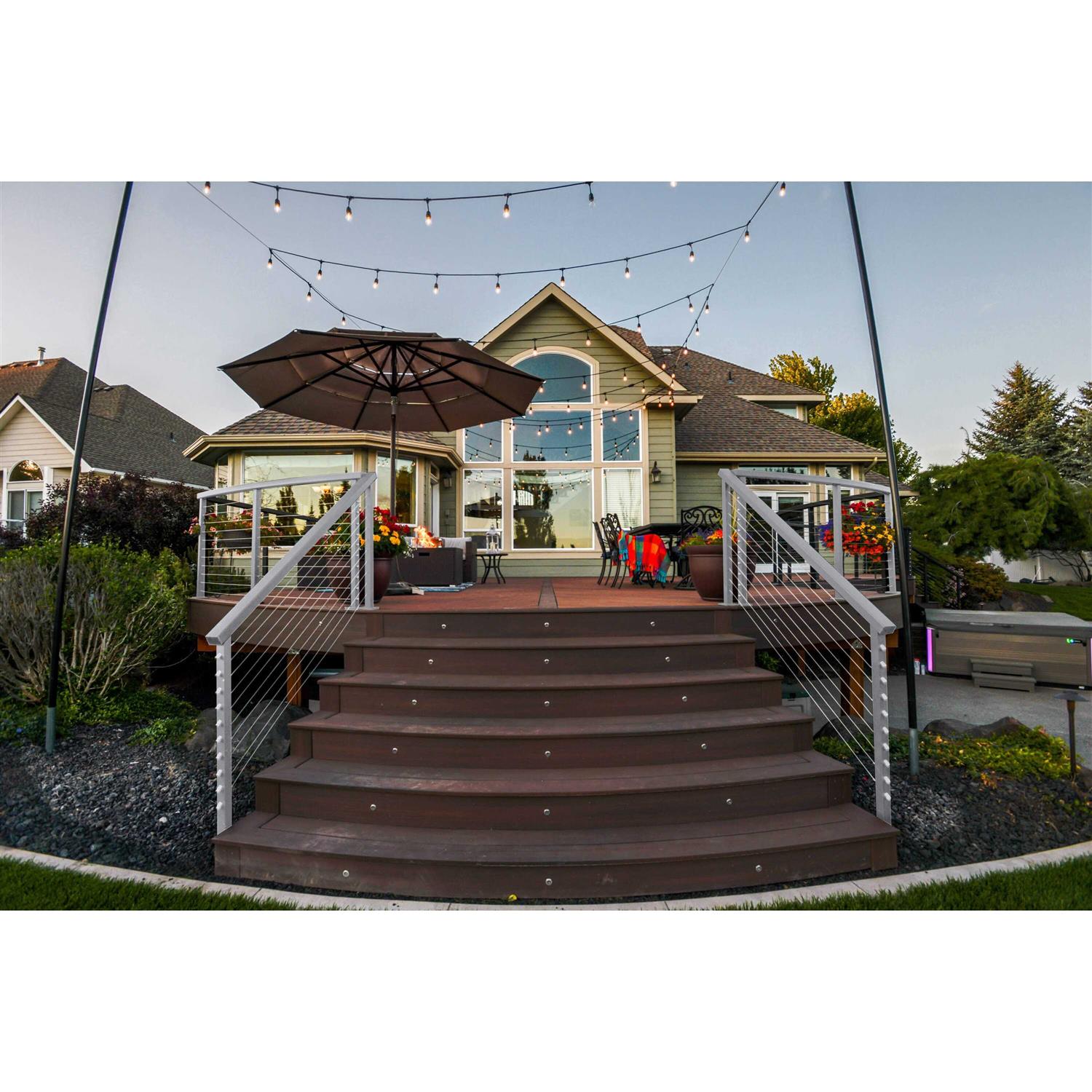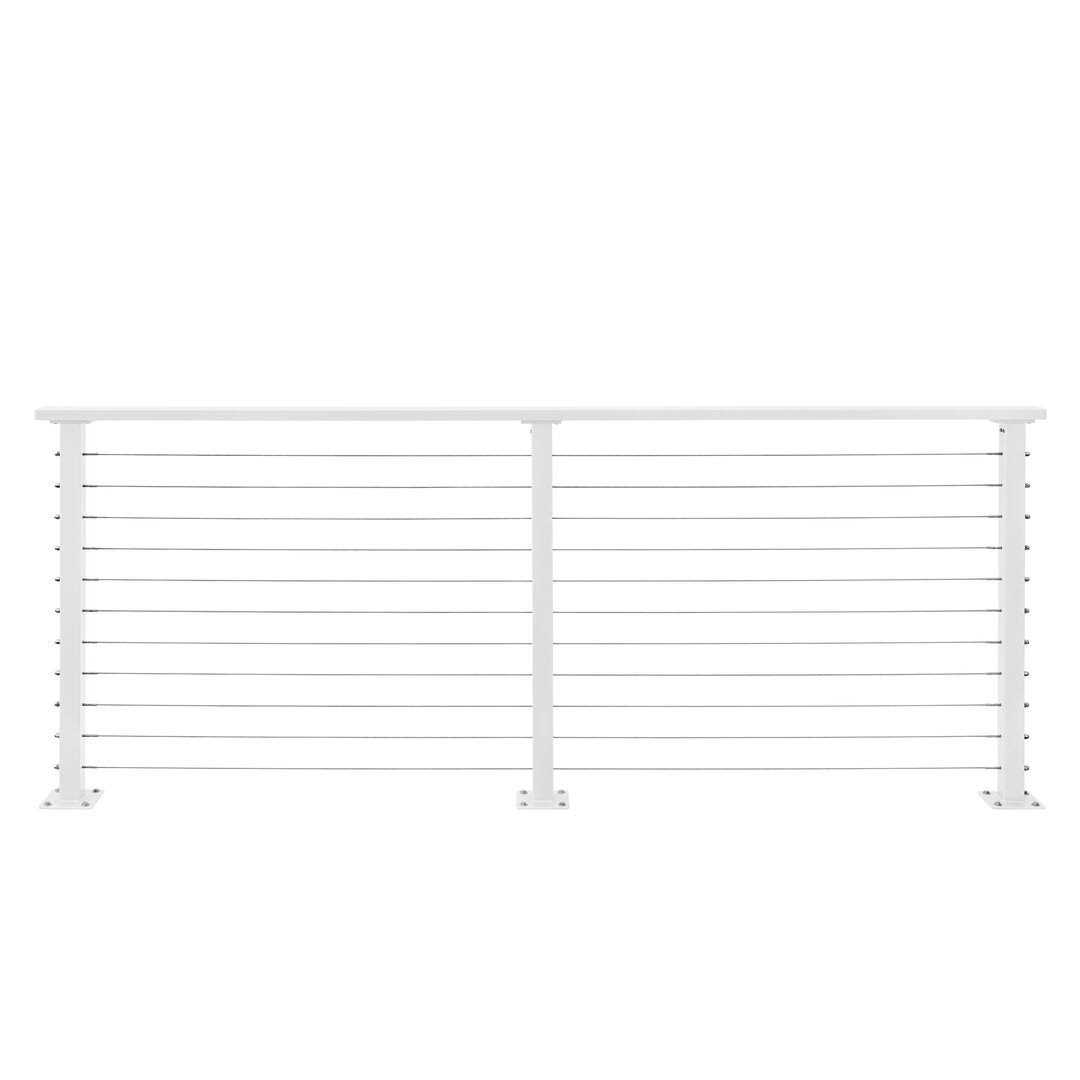 The cable railing kits can be ordered to fit your needs regardless of your project layout. All kits come with enough posts to install at a maximum center-to-center spacing of 6FT (for example 24FT kits include 5 posts). All you need to do is measure each deck/stair side and order kits that most closely match in length (always round up to the nearest size to ensure the proper fit)./r All kits come with pre-drilled posts, mounting bolts, and the patented top rail bracket, all cable and cable hardware is marine-grade 316 stainless steel (10% extra cable is included with every order). In addition, all kits come with a 6′ aluminum top rail that is powder-coated to match the posts. The top rail is designed to cut and join over each post. 100% Of components are included to complete your railing. example: For a deck with (3) sides that measure 12FT/24FT/12FT you will want to order (3) the kits: (2) 12FT kits and (1) 24FT kit.