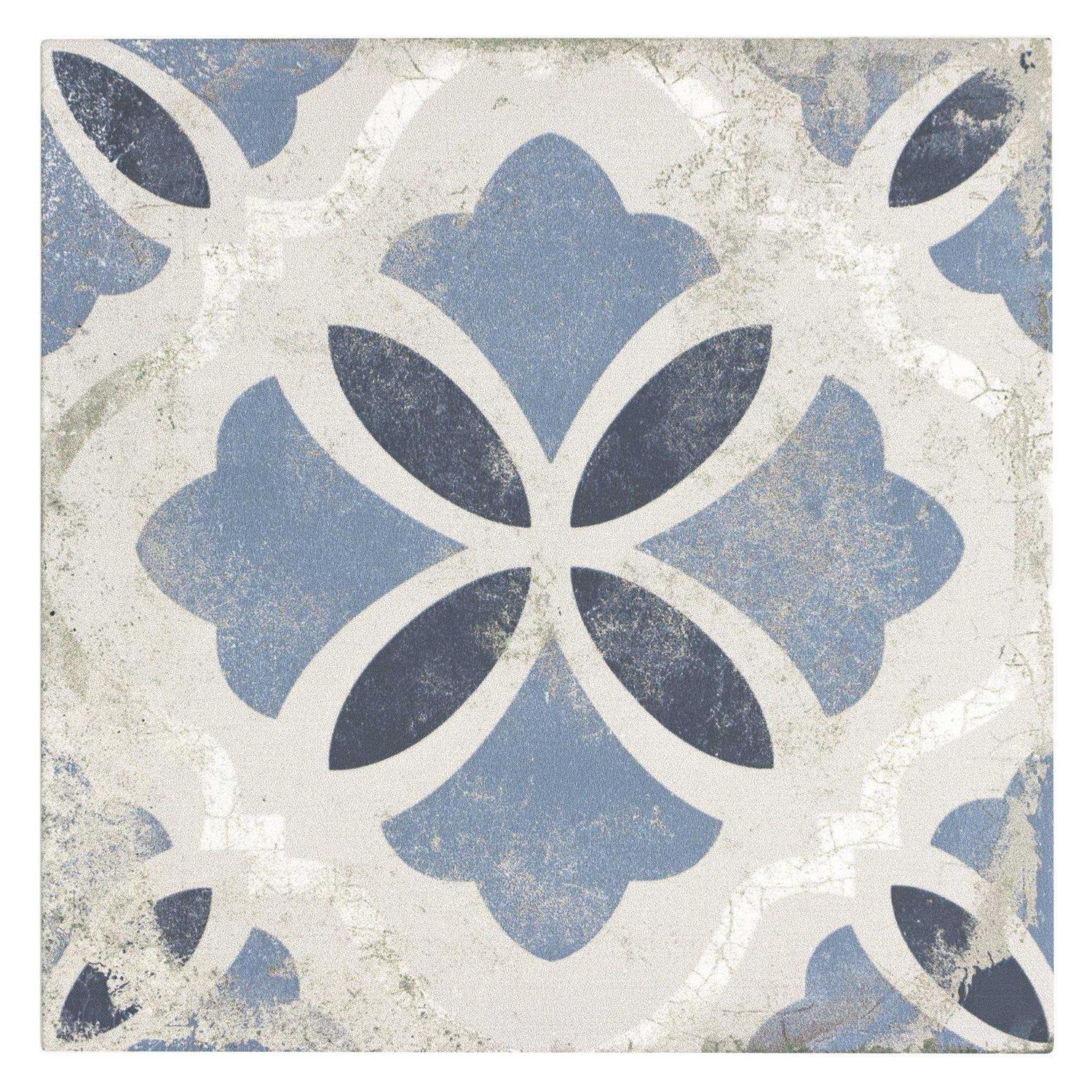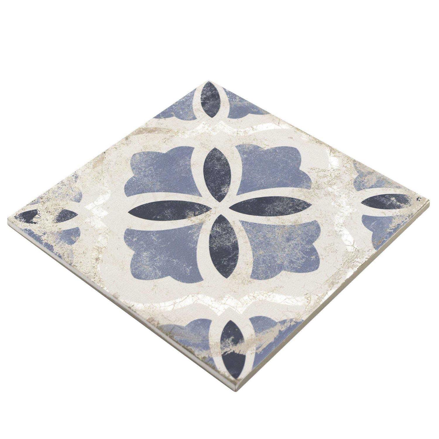 Mosaic Tile Outlet Mto0598 Classic 9×9 White Blue Matte Distressed Porcelain Tile, Size: 8.859 x 8.859