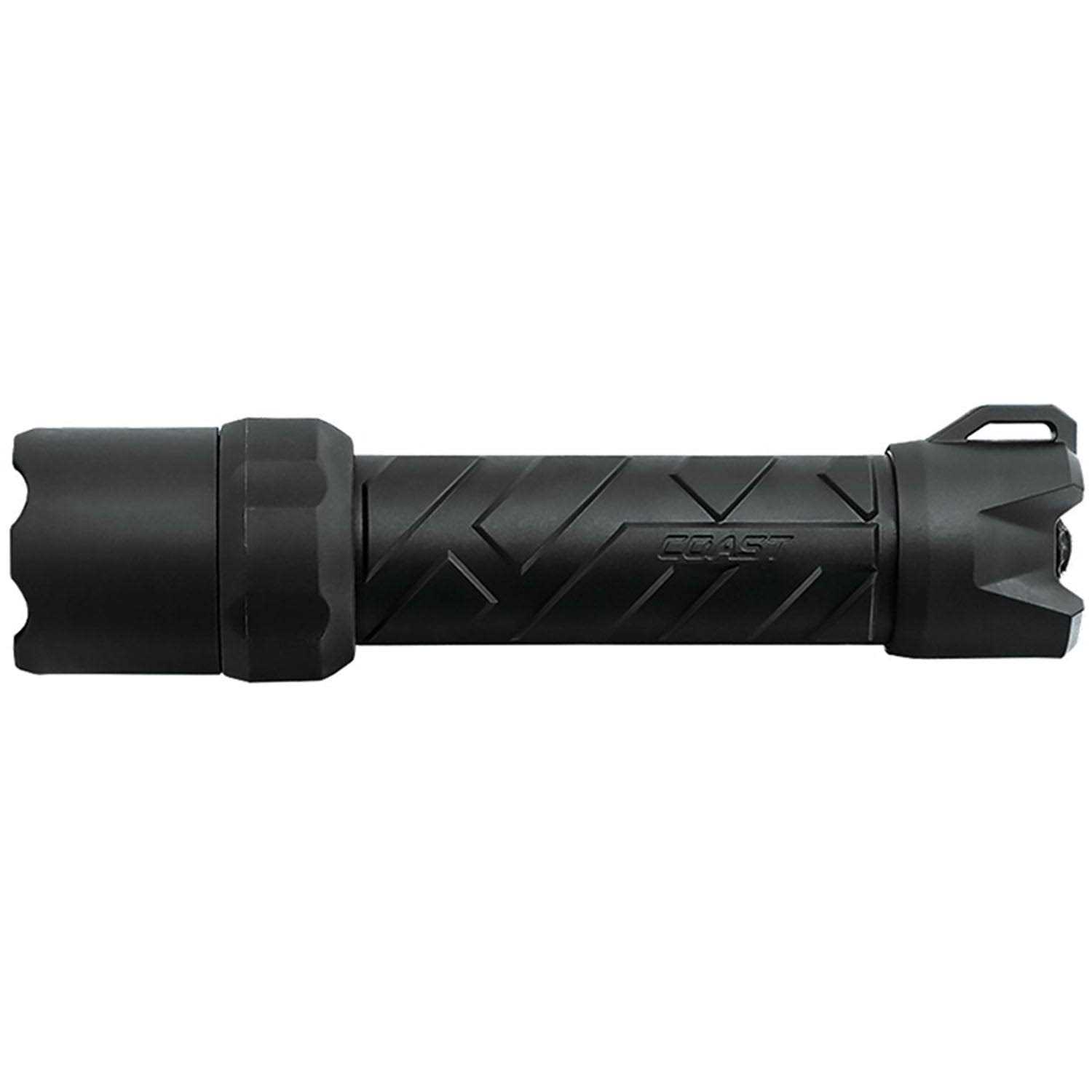 Coast designed and built the PolySteel 600 LED Flashlight to work as hard as you and be just as tough. With a twist of a collar on the head, the versatile Pure Beam Focusing system allows you to change the beam from a wide flood that lights large areas close to you into a focused spotlight that is optimized for a long throw. In the spot mode, the light has Coast’s bulls-eye beam that has a bright center circle that smoothly transitions to a dimmer “halo” around it—providing maximum illumination where you need it with plenty of spill to keep you aware of your surroundings. The PolySteel body consists of a stainless steel core wrapped in a nylon-reinforced polycarbonate material. This combination of poly and steel produces a housing that is resistant to drops, impacts, and crushing. The poly exterior is highly slip resistant, and the deep-grooved handle design adds to its positive grip even in cold and wet conditions. Speaking of wet conditions, the PolySteel 600 is rated IP54 water resistant, so the occasional splash or spray will have no impact on its performance. The PolySteel 600 runs on four AA batteries and its three outputs are controlled using a simple push-button tailcap switch. With a mid-sized length and weight, and powerful high-lumen output, the light is up to just about any daily task you give it—making it your ideal everyday carry illumination tool.