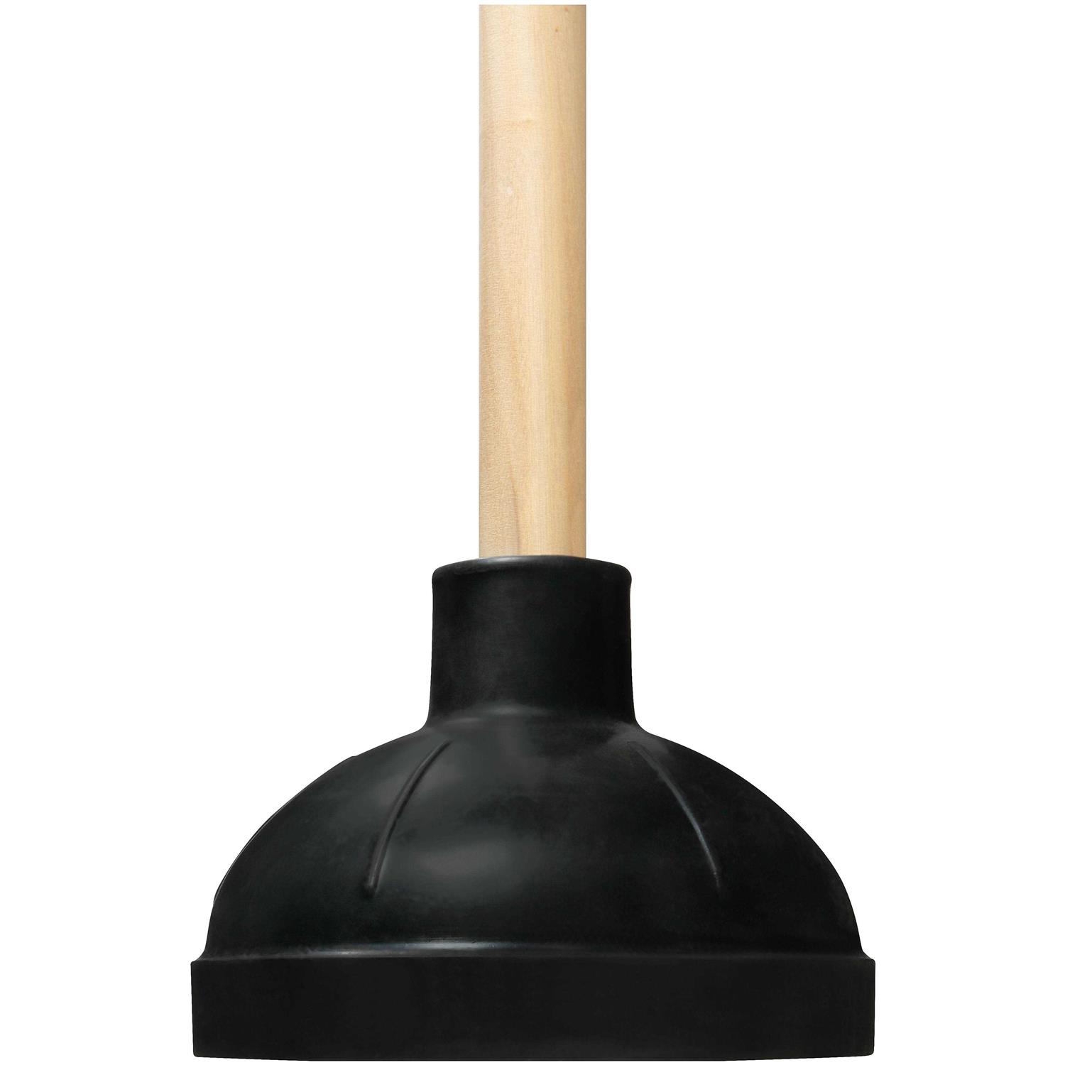 Maintain a clean, functional bathroom at your workplace. Rubber head creates a tight seal for optimal pressure to remove tough clogs, while the natural wood handle provides a firm grip. Works on sinks or toilets for versatility. Durable construction stands up to the rigors of frequent use. For both sinks or toilets. Features a wooden handle with a black rubber head. Rubber head creates tight seal when plunging to remove tough clogs. Wooden handle provides a firm grip when plunging.