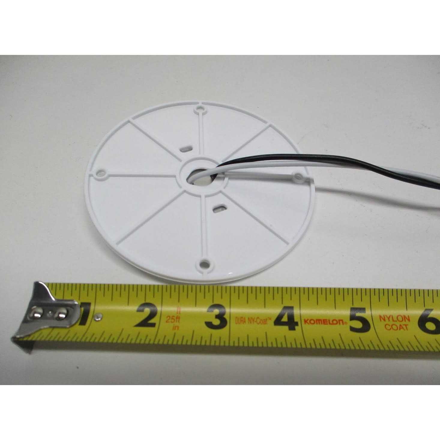 Interior Light Only… 9 LED Board Provides Bright White Light… Removable Frosted Lens Cover with Center Button For On/Off Switch… Base Measures 4-3/8 inch Diameter with 4 Screw Holes For Mounting… Frosted Cover Measures 4-1/2 inch Diameter… Mounting Fasteners Are Not Included… 6 inch Wire Leads… White Wire – Ground, Black Wire – Hot… 12V Input…
