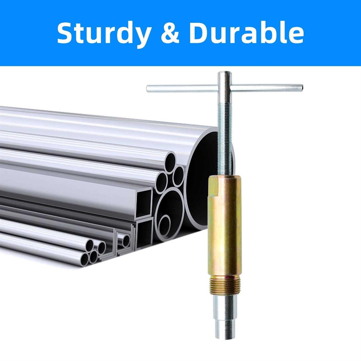 Saves A Lot Of Time– if you don’t have sufficient exposed copper to cut off the old compression fitting, this angle stop puller will effortlessly remove the old compression ring and reform the previously crimped copper pipe back to a perfect circle. Saves a lot of time around cutting old pipes. Make Your Life Easy–This sleeve remover removes 1/2-inch copper water compression sleeve.This compression sleeve puller removes leaking compression sleeves without damaging walls, which effortlessly pulls the nut and ferral off of the pipe. Operating Steps–1. Remove the old compression fitting or the old angle stop. 2. Put the nut of pipe to the golden threaded mouth of the puller tool to tighten the screw 3. Make sure the ferrule puller is properly aligned with the pipe, and then you are able to remove the nut and ferrule with maybe 10 turns of the handle. 4. The puller tool will automatically pull compression nut and ferrule. Resistant & Wear Resistant.–Even such as the existing supply stops are severely corroded or frozen, you can turn the lever to extract the old compression sleeve from the pipe.Ideal for working on frozen or corroded supply stops,corrosion resistant & wear resistant. Buy with confidence and add to cart now!