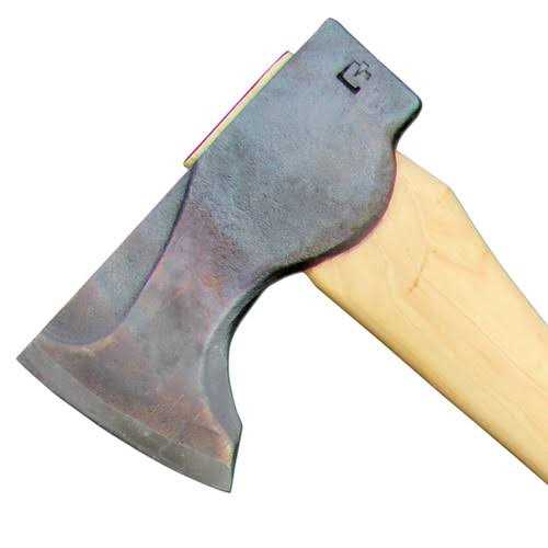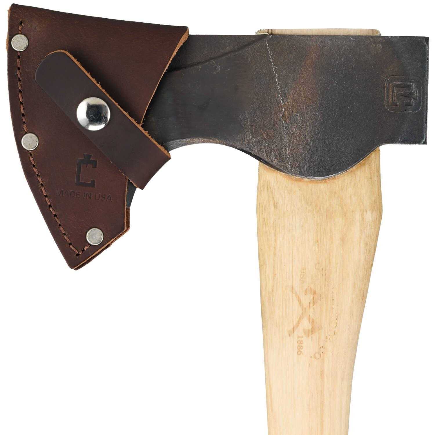 This outstanding packable axe is a great option for camping and bushcraft. It has a 2 lb head forged from 5160 steel and hardened to 54-56 HRC for edge retention. With a 3 1/2″ cutting edge, this axe is well suited for chopping, limbing, splitting, felling smaller trees, and even rough carving and hewing. The head features a hardened, extended poll for improved overall balance and for driving metal stakes and wedges. The head is hafted proud on a durable 19″ grade-A hickory handle. Vegetable-tanned leather sheath included. Made in the USA by a family-run company that has been producing hand-finished axes and tools of the highest quality and durability since 1886.