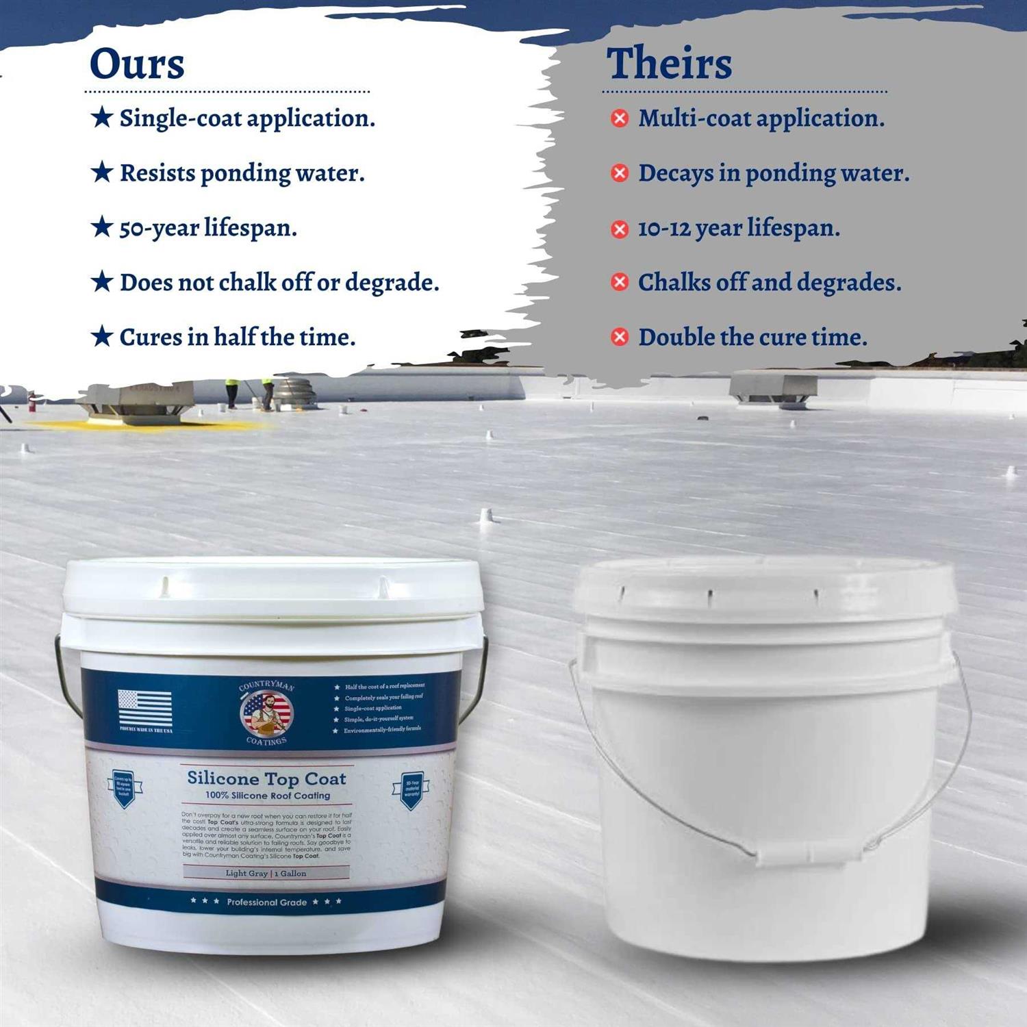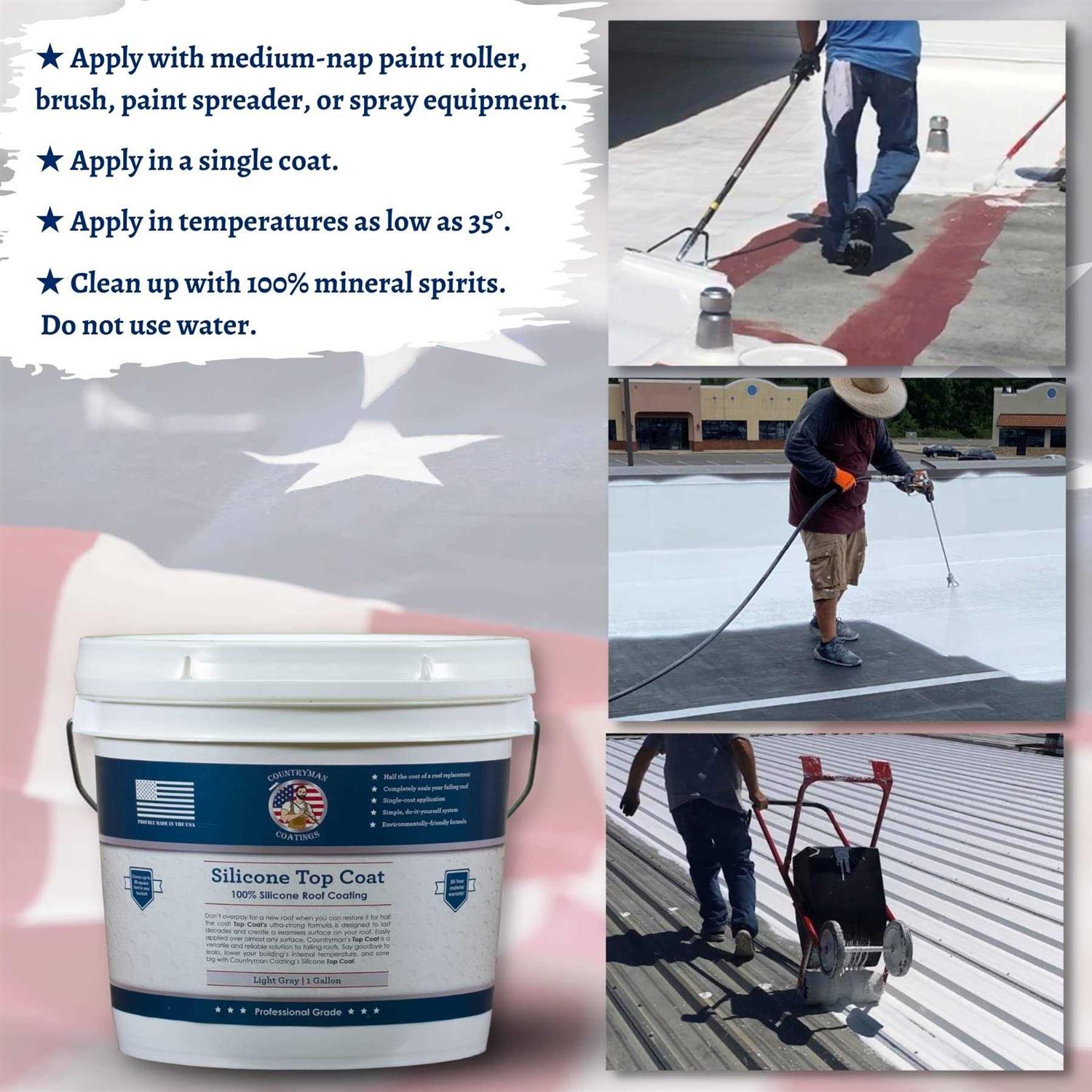 Countryman Coatings 100% Silicone Roof Coating – Restore Your Roof in A Day – Seal Leaks Cracks Seams Penetrations – Adheres to All Surfaces (1 Gallon