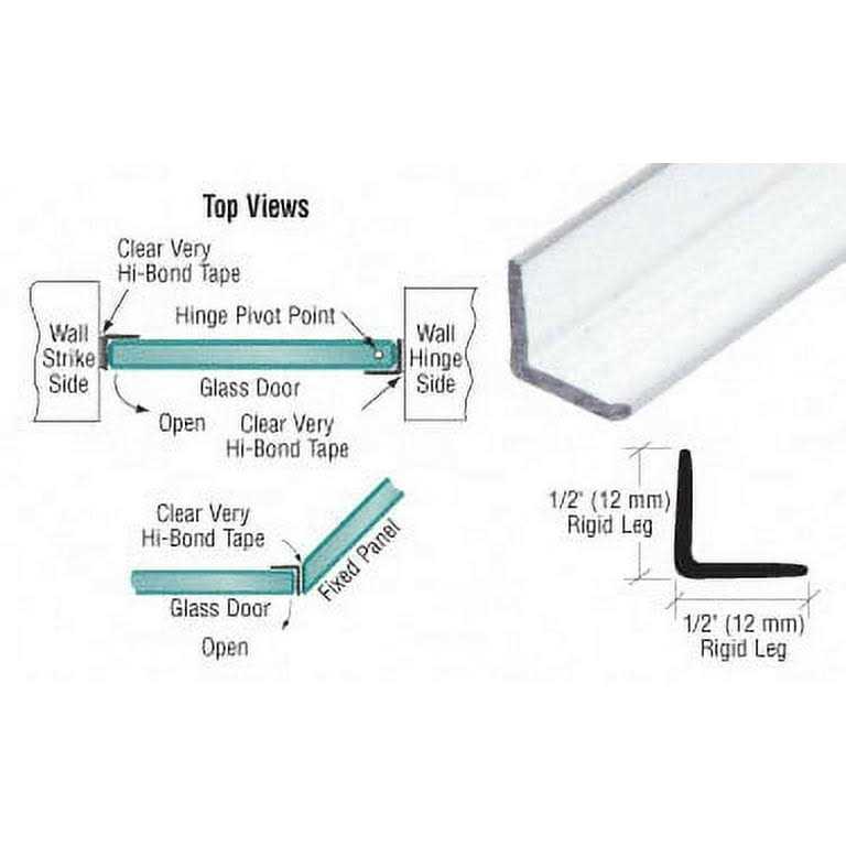 This CRL Clear Polycarbonate Strike Angle Jamb is used for both hinge and strike jambs. It can be adhered to the wall of a fixed panel using our CRL Clear Very Hi-Bond Tape. It is commonly used as a jamb for neo-angle installations when a clean look is most desired. Minimum order is five each. Packing Charge added to orders fewer than 10 combined lengths.