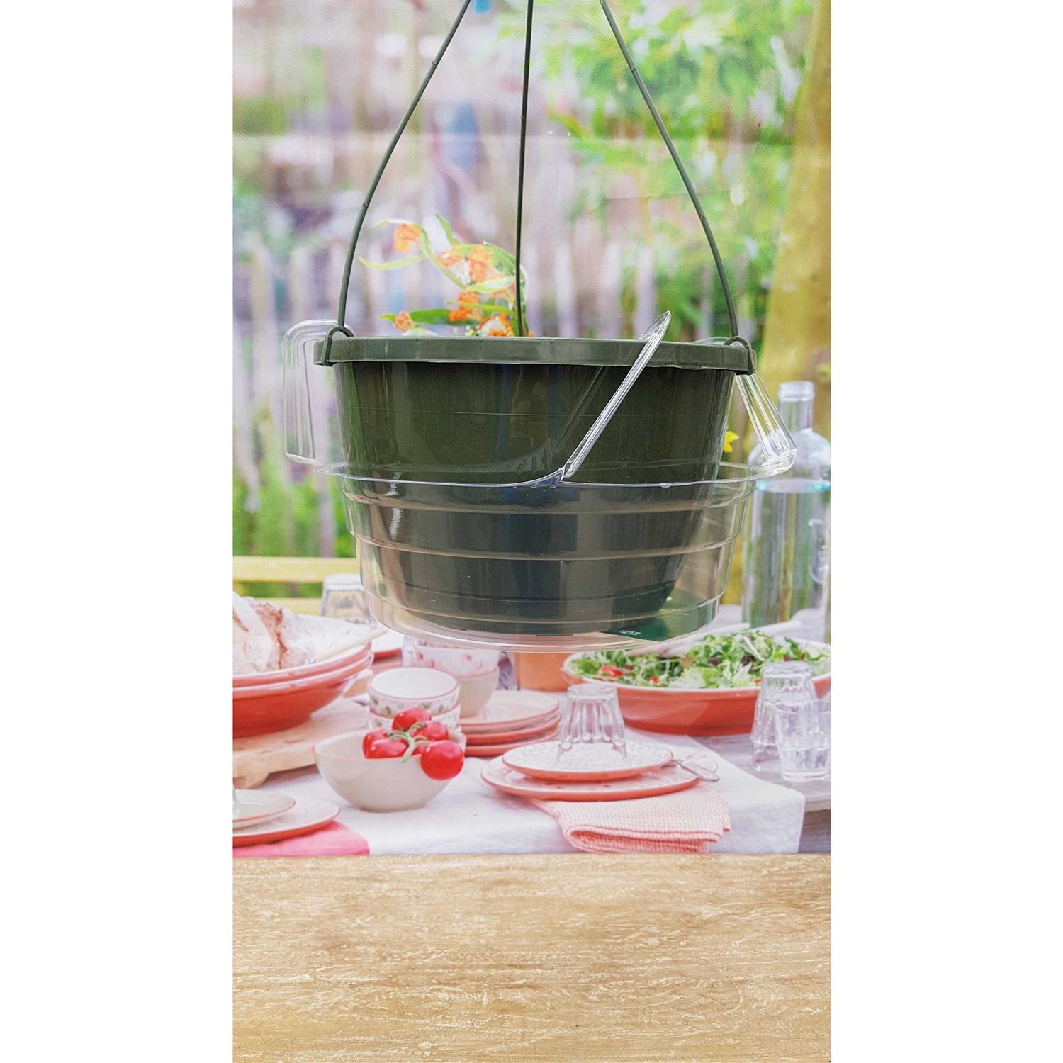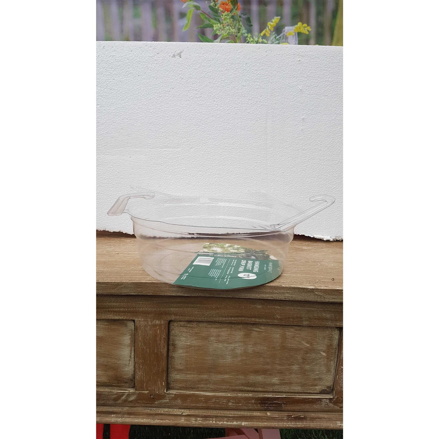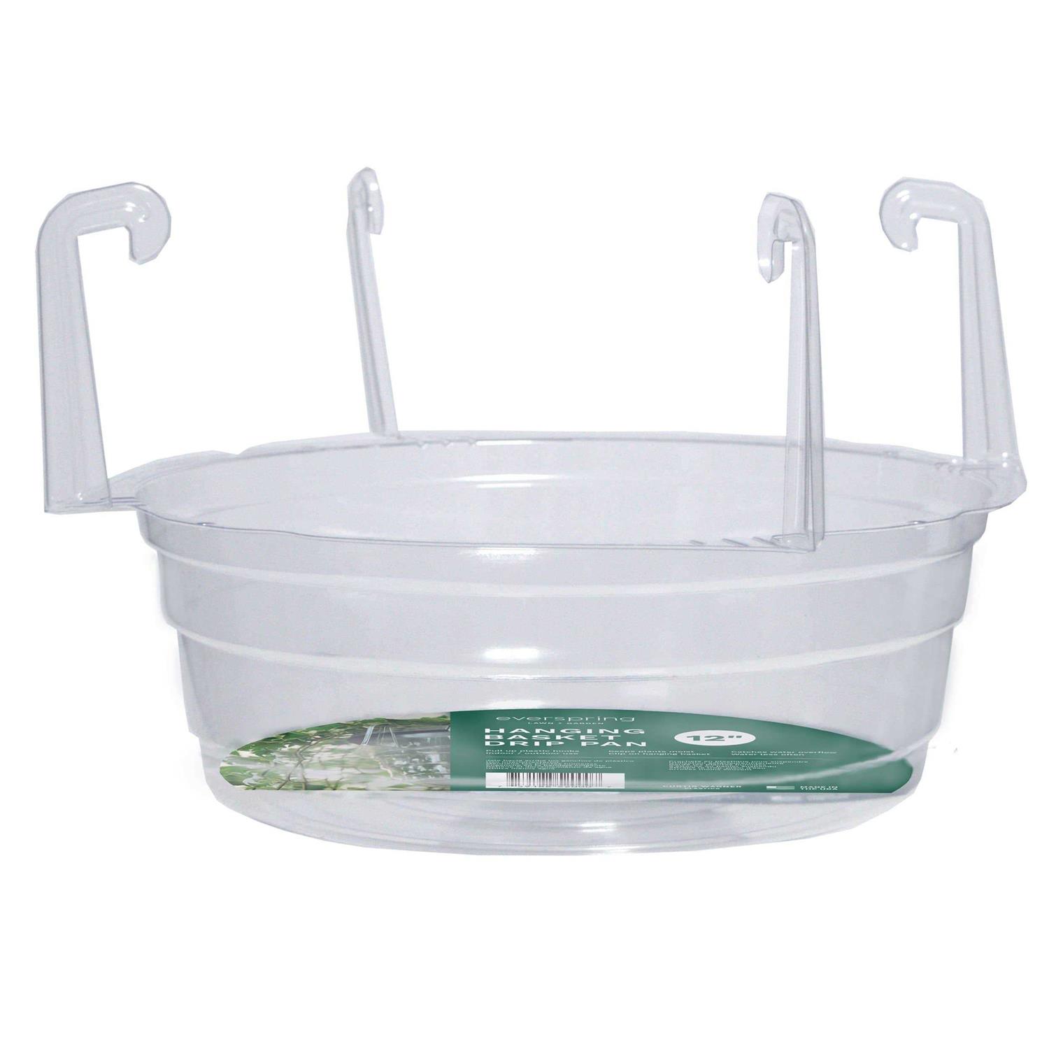The 12 inch Hanging Basket Drip Pan is a convenient product that helps keep plants moist while preventing water from dripping onto the floor. Its dimensions of 12 top diameter x 3.75 depth x 9 base diameter make it the perfect size for most hanging baskets. The product contains 4 built-in hooks for added stabilization which makes it easy to assemble. Made from recyclable plastic, this drip pan is clear and of high quality. The drip pan humidifies the plants and keeps them moist. It also prevents water from dripping through the hanging baskets which eliminates the need for constant cleanup. The assembly of the product is simple and it comes with pull up plastic hooks that clip over the hanging basket lip. In addition to that, it can be used as a watering devise. Just fill the drip pan with water and it will gradually water the plant within the hanging basket through absorption.