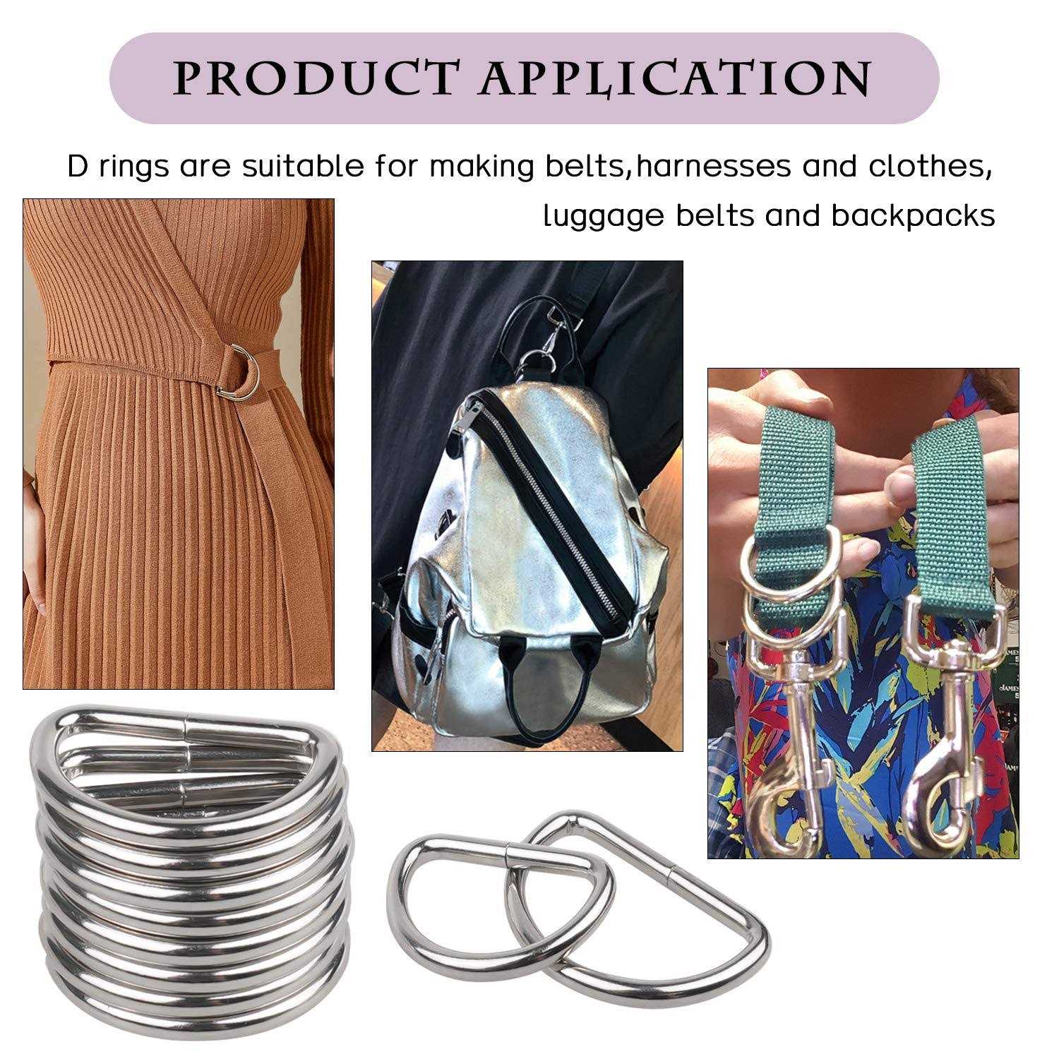 About The Item: Size: There Are Five Sizes Of D Rings For Sewing, Namely 10 Pcs 32mm, 15 Pcs 25mm/1inch, 15 Pcs 20mm, 25 Pcs 15mm And 25 Pcs 12mm. Multiple Uses: Suitable For Sewing Belts, Bags, Handbags, Backpacks, Clothes, Pet Collars, Etc. Material: Our D Rings For Sewing Are Made Of High Quality Alloy, With Good Plating And Rust Resistance, They Have Smooth Surface, Very Convenient And Comfortable To Use. Quantity: You Will Get 90 Metal D Ring, Enough For Your Daily Use. Quality: Our Metal .