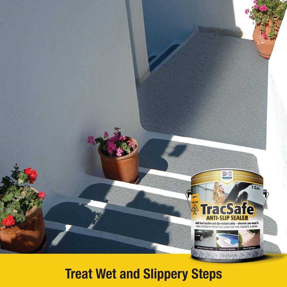 Now you can add more foot traction and safety to all kinds of slippery surfaces indoors and out with TracSafe Anti-Slip Sealer by Daich Coatings. It’s a unique pre-mixed formula that’s ready to apply wherever you need it. TracSafe locks firmly onto all kinds of flooring materials, indoors and out. From concrete, patio stones and pavers, to slippery fieldstone, linoleum and even ceramic tile, you can make numerous slippery surfaces safer in just a day. Treat slippery steps, walkways and wet pool decks, to garage and workshop floors, entrances, shower floors and more. It’s also great for business settings, including exterior grounds, steps, entrances and slippery interior floors. Along with its anti-slip benefit, TracSafe is also a superior high performance sealer. It forms a tough, clear barrier that protects surfaces and helps keep them in ideal condition. It’s also an excellent top coat for use over all Daich decorative stone floor coatings and other prepared pre-painted surfaces. Color: Transparent.
