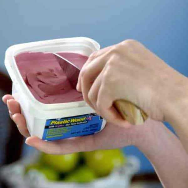 DAP Plastic Wood-X All Purpose Wood Filler with DryDex Dry Time Indicator goes on pink and dries natural indicating when it’s time to sand and stain. This patented technology eliminates the guesswork and reduces the chance of errors. It’s ready-to-use formula spreads easily for fast professional repairs. Color: White.