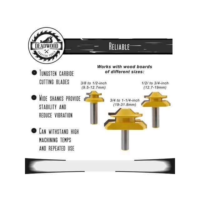 DCT 45 Degree Locking Miter Bits – 3PC 1/2in Wood Router Bits for Box Building