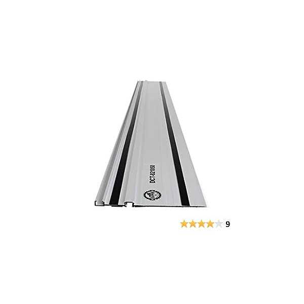 Craft plywood sheets or repeatable rip cuts in woodworking projects and furniture installations with the DCT Rail Track Saw Guide Woodworking Ruler. It can be used on different sized cuts requiring clean, straight edges and high precision that is splinter-free. Compatible with Makita, Festool, WEN, DeWalt, and other saws with 4.75in width between inside channel guide and blade and even works with saws that have anti-tip features when you do bevel cuts and rely on a sliding metal disk in track groove. Made of aluminum dual direction soft edges and anti-slip bottom so track clamps or regular clamps are not required. 55 x 7.2in plunge saw guide rail and chip guard (trimmed close to aluminum on your first cut) extends 1/16in beyond width bringing total to 7.25in plus a skosh (<1/32in).