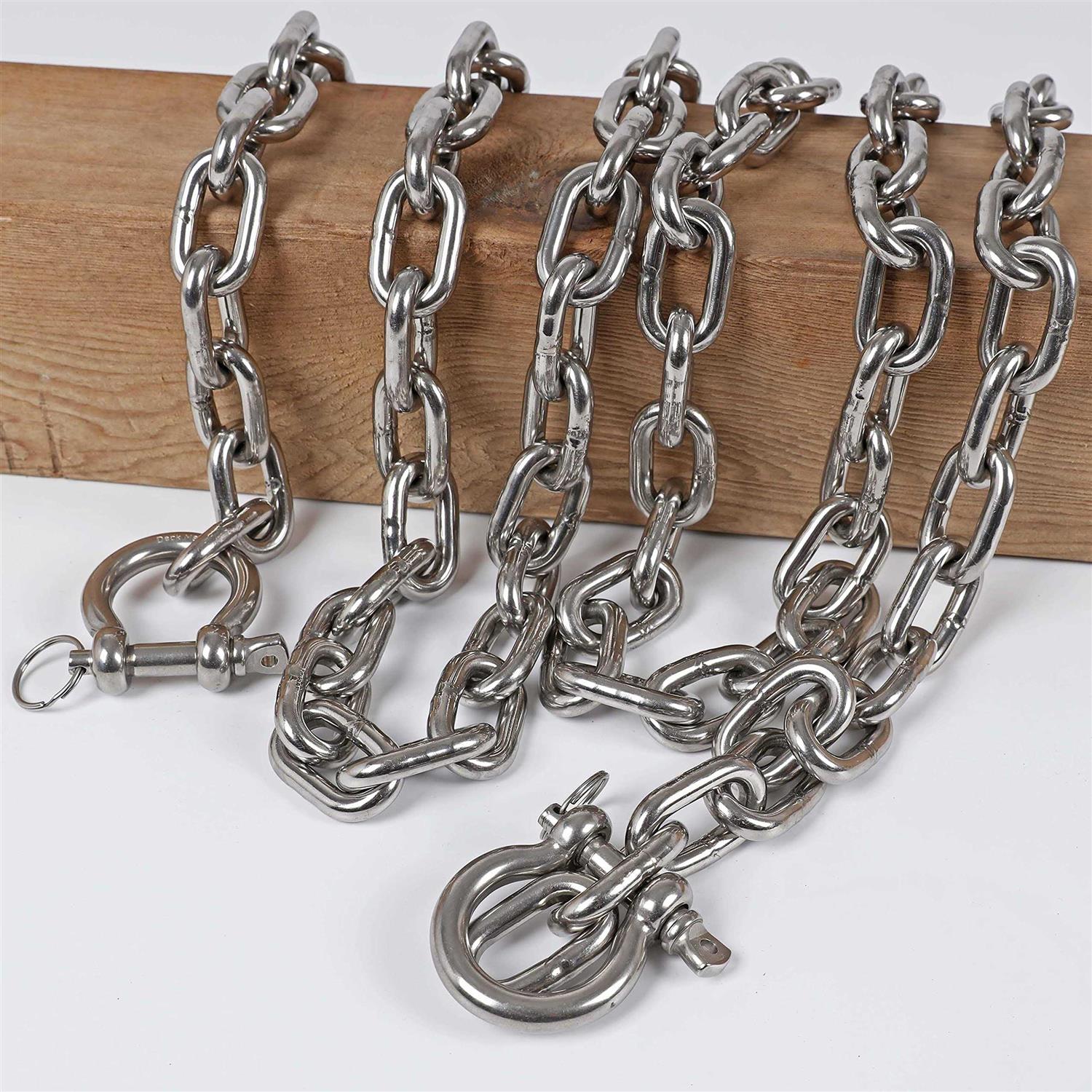 Deck Man 316 Stainless Steel 5/16 Boat Anchor Chain with 2 Pcs 3/8 Anti-off Shackles,Marine Grade