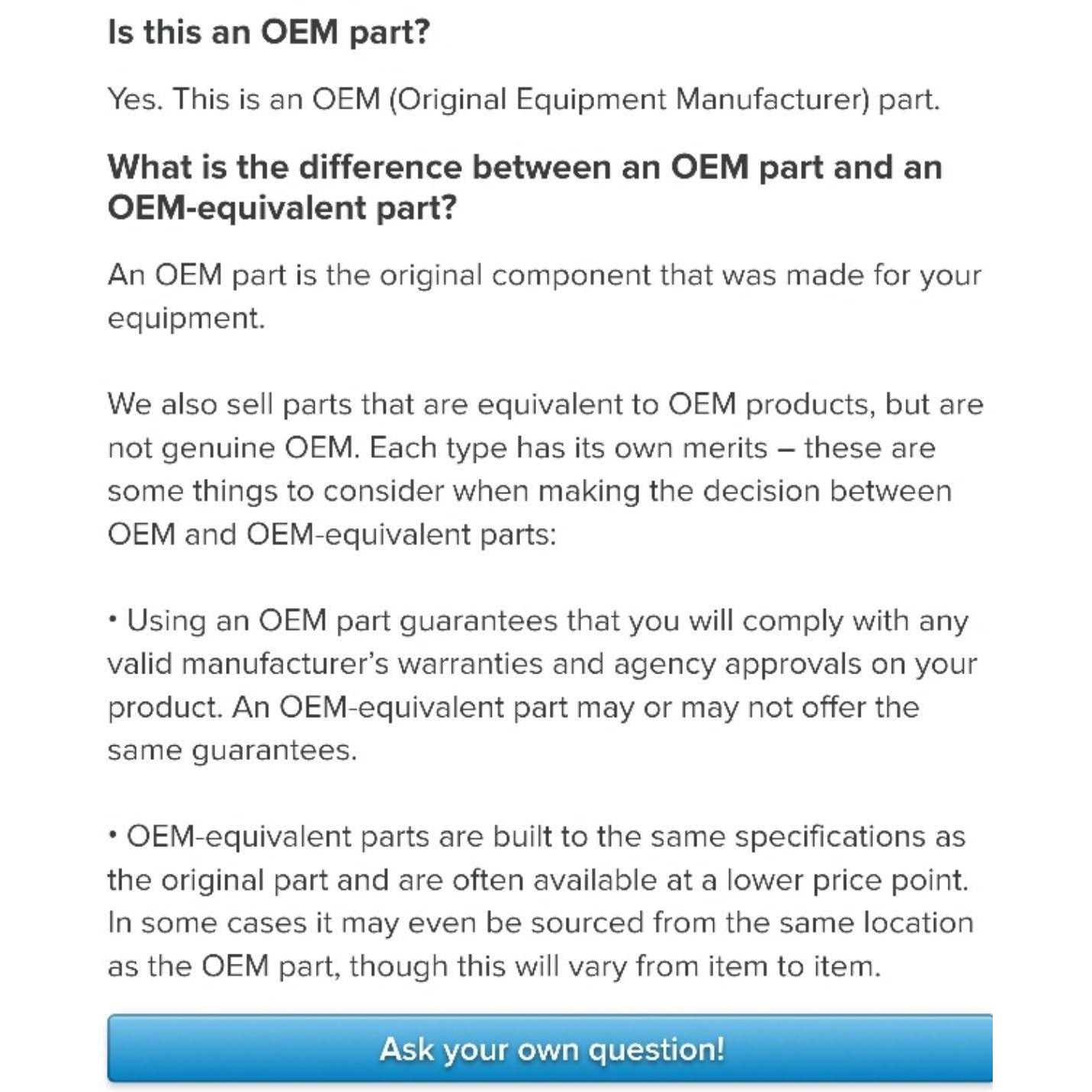 - This is an O.E.M. authorized part or This is an authorized aftermarket product
