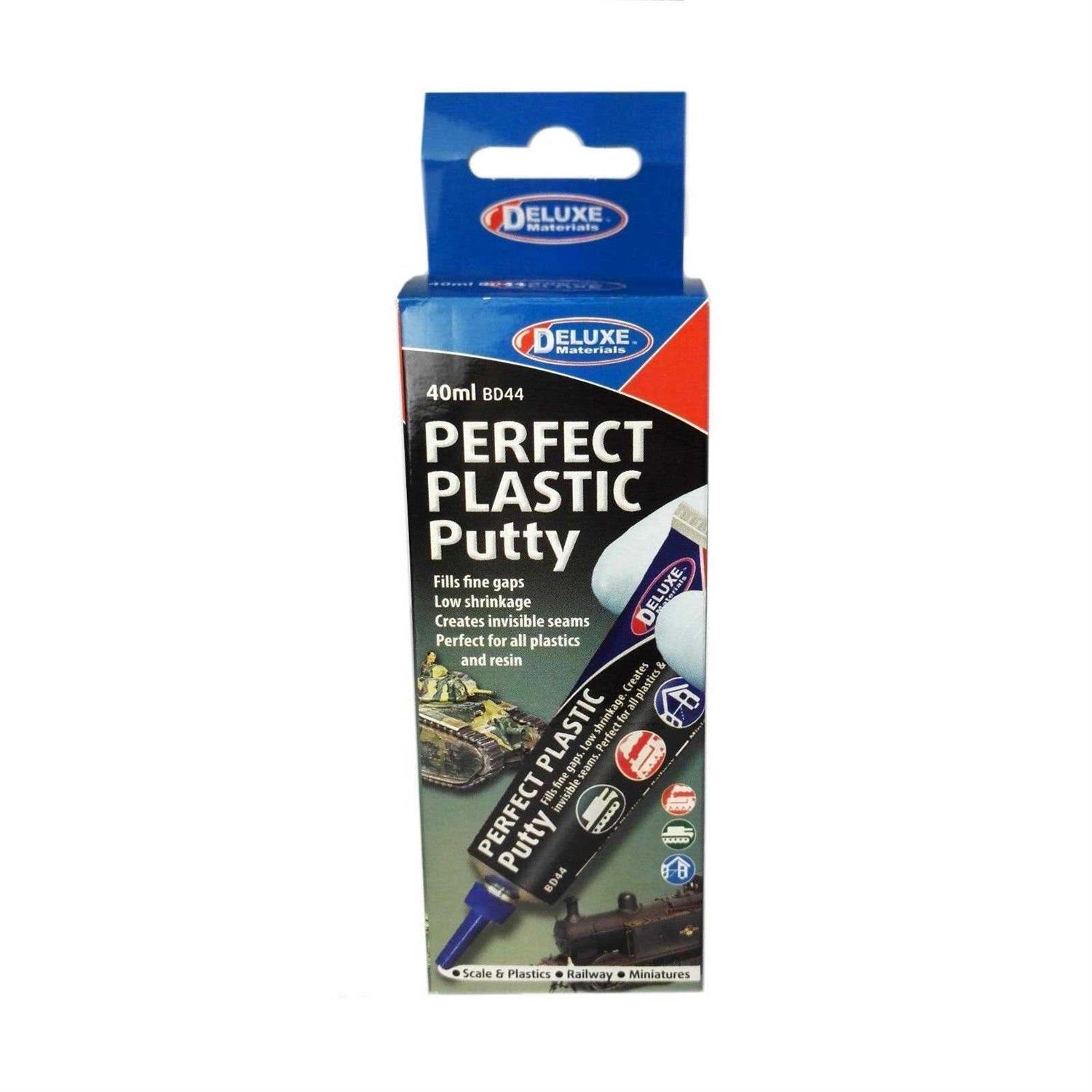 Made by Delux Materials; Delux Materials is a United States based company; parts are sourced from Global producers Delux Materials part number DLMBD44 Creates invisible seams. Water clean up. Perfect Plastic Putty is a one-part, fast-drying, superfine filler with good adhesion and sanding properties on plastic. Easily used, even in awkward areas with water clean up. Apply with small spatula, smooth and allow to dry.