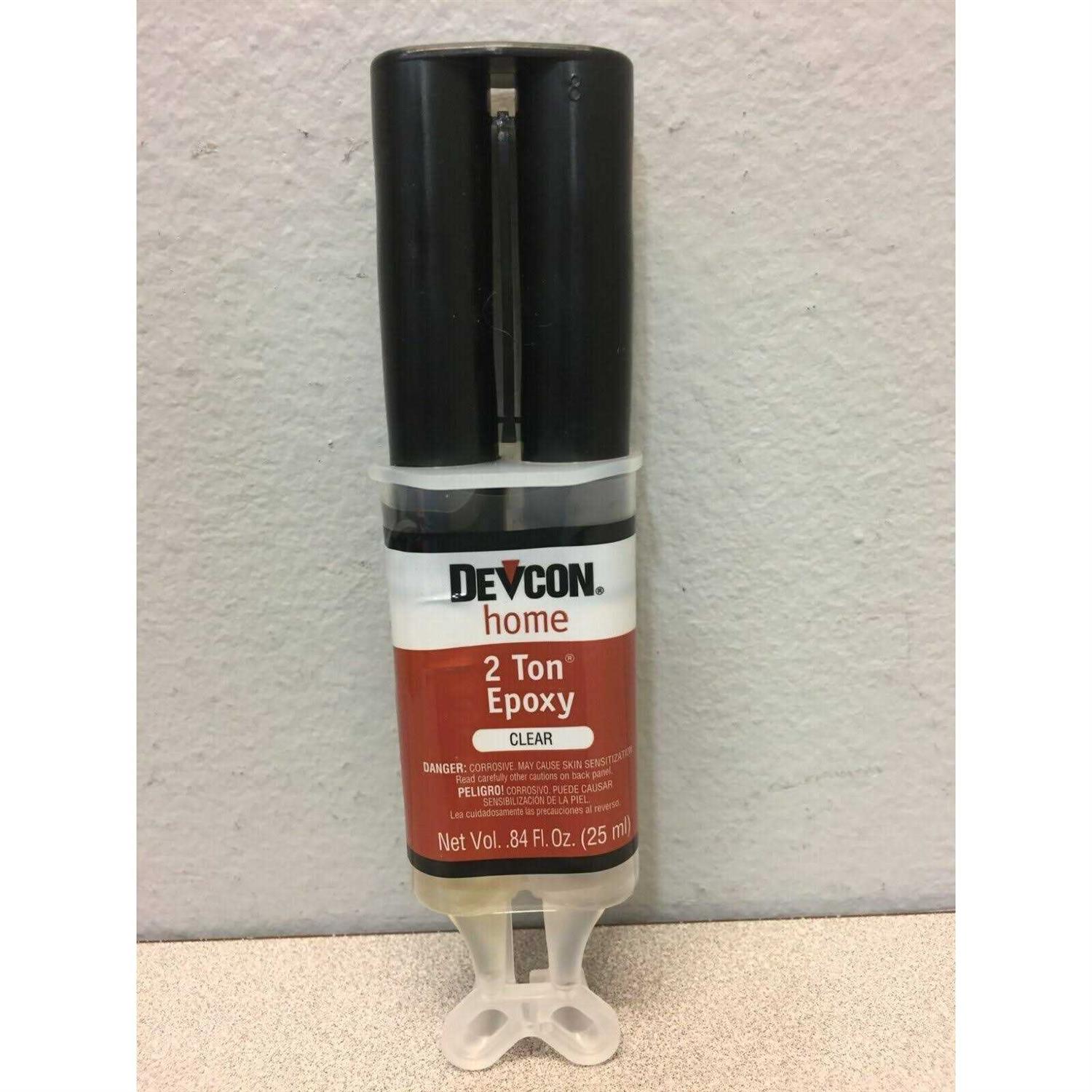 Devcon Flow-Mix 2 Ton Epoxy is a clear, extremely strong, non-shrinking adhesive, specially formulated for high-clarity and good impact strength. The flow-mix nozzles automatically mix the resin and hardener together. For best results, pull plunger back slightly (1/8”) to allow air bubbles to rise to the top so that you do not push air bubbles into the Flow-Mix nozzle. To get an even flow of resin and hardener, push down evenly on the plunger. Apply the thoroughly mixed epoxy directly to your repair. It is good to place removable tape on the surrounding areas or surfaces that you do not want to get epoxy on. Before the epoxy cures, remove the tape. Bonds acrylic, china, fiberglass, metal, wood, concrete, ceramic, and glass with a tensile strength of 2500 PSI. Waterproof, with a Temperature Range of -40 degrees Fahrenheit to 200 degrees Fahrenheit.