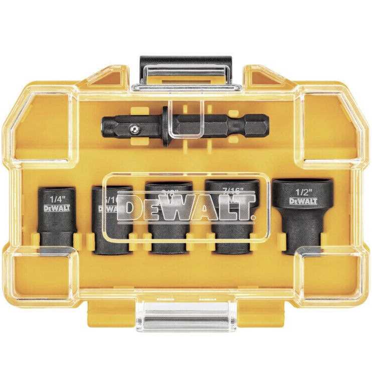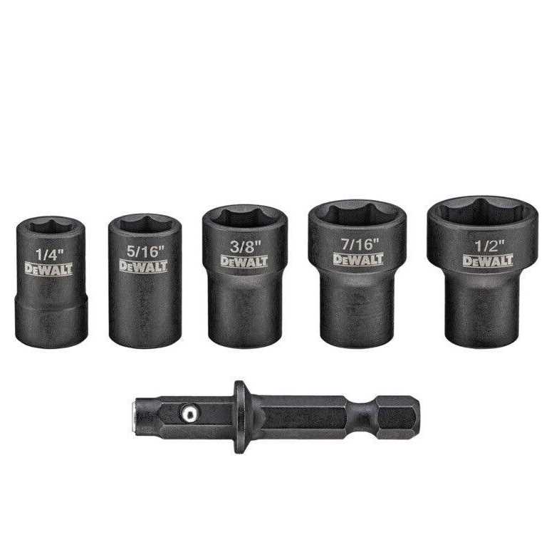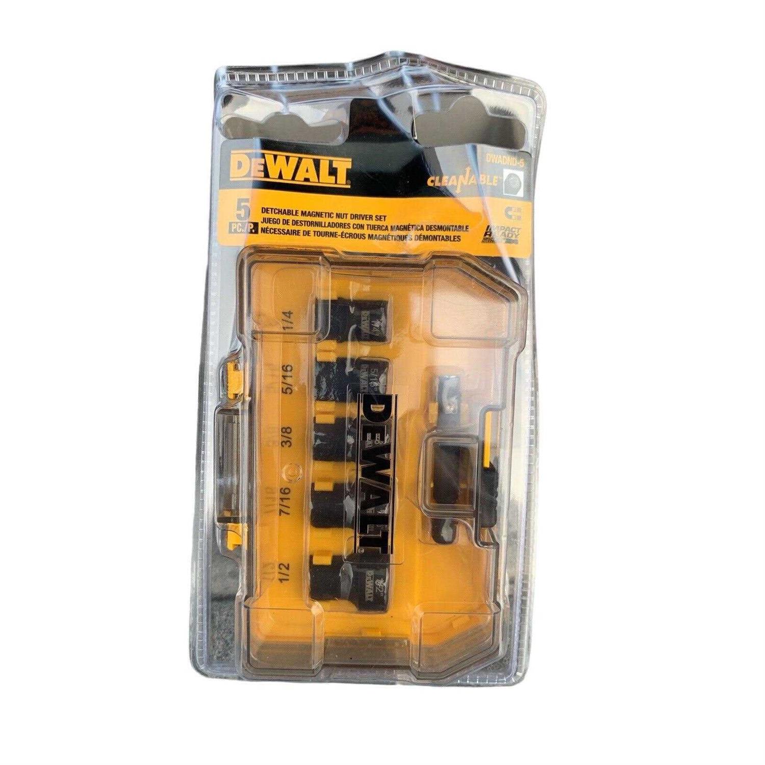 Secure nuts and bolts with this DeWALT detachable nut driver bit set. Made of shock-resistant steel, the drivers are durable. Magnets in the bits ensure fastener retention for a secure hold. Fit nut drivers from sizes 1/4 in to 1/2 in into the universal hex shank on each bit. With the detachable design, it’s easy to clean off debris. Each set contains five bits.