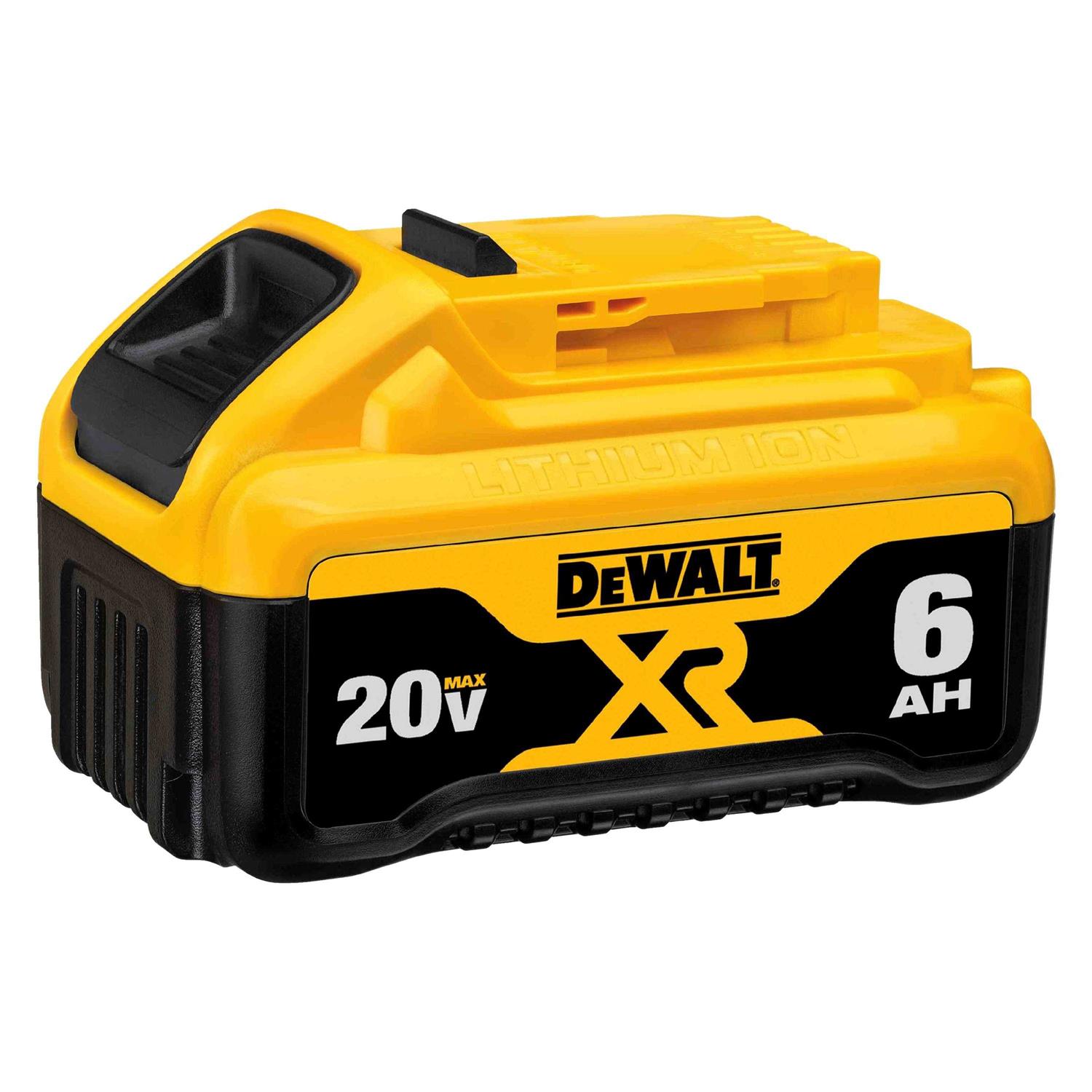 The 20V MAX Premium XR 6.0 Ah Lithium-Ion Battery Pack from DEWALT helps you get your job finished quickly. It’s compatible with all tools in the same product line so you can use it for any trade, from carpentry to electrical work. This DEWALT 20V Max 6.0 Ah lithium-ion battery takes just one hour to charge when you pair it with a DCB118 Fast Charger. The unit’s lithium-ion design means that it won’t form a memory, so you can put it on the charger before the power is completely drained. Its three-LED system displays the DEWALT rechargeable battery pack’s remaining charge level so you can more effectively manage your work. The 6.0 Ah power rating gives it twice the capacity of the standard battery so you can get more done with less downtime.
