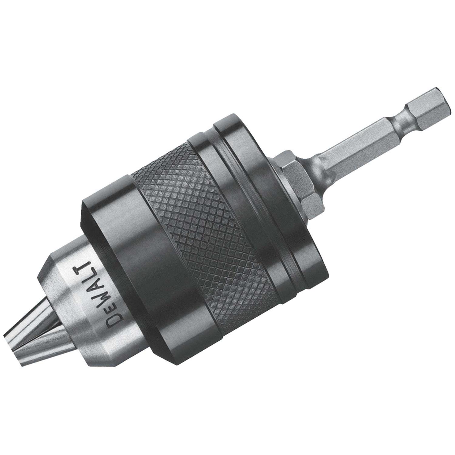 Easily change from fastening to drilling with a 1/4 in hex quick connect. The DW0521 quick connect 3/8 in impact chuck is built with all-metal construction for maximum durability. 1/4 in hex quick-connect allows users to easily change from fastening to drilling. 1/4 in hex quick-connect allows users to easily change from fastening to drilling. Built with all-metal construction for maximum durability. Single sleeve design allows for single handed tightening.
