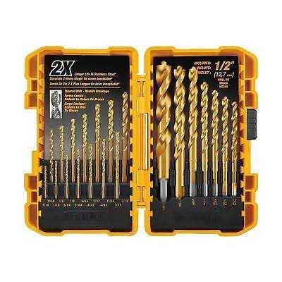 DEWALT’s titanium drill bits have a titanium coating that provides longer life when drilling in non-ferrous metals. These bits are also suitable for drilling in wood and plastic and are ideal for commercial and residential applications. Includes sizes from 1/6-inch to 1/2-inch in a plastic tough case.