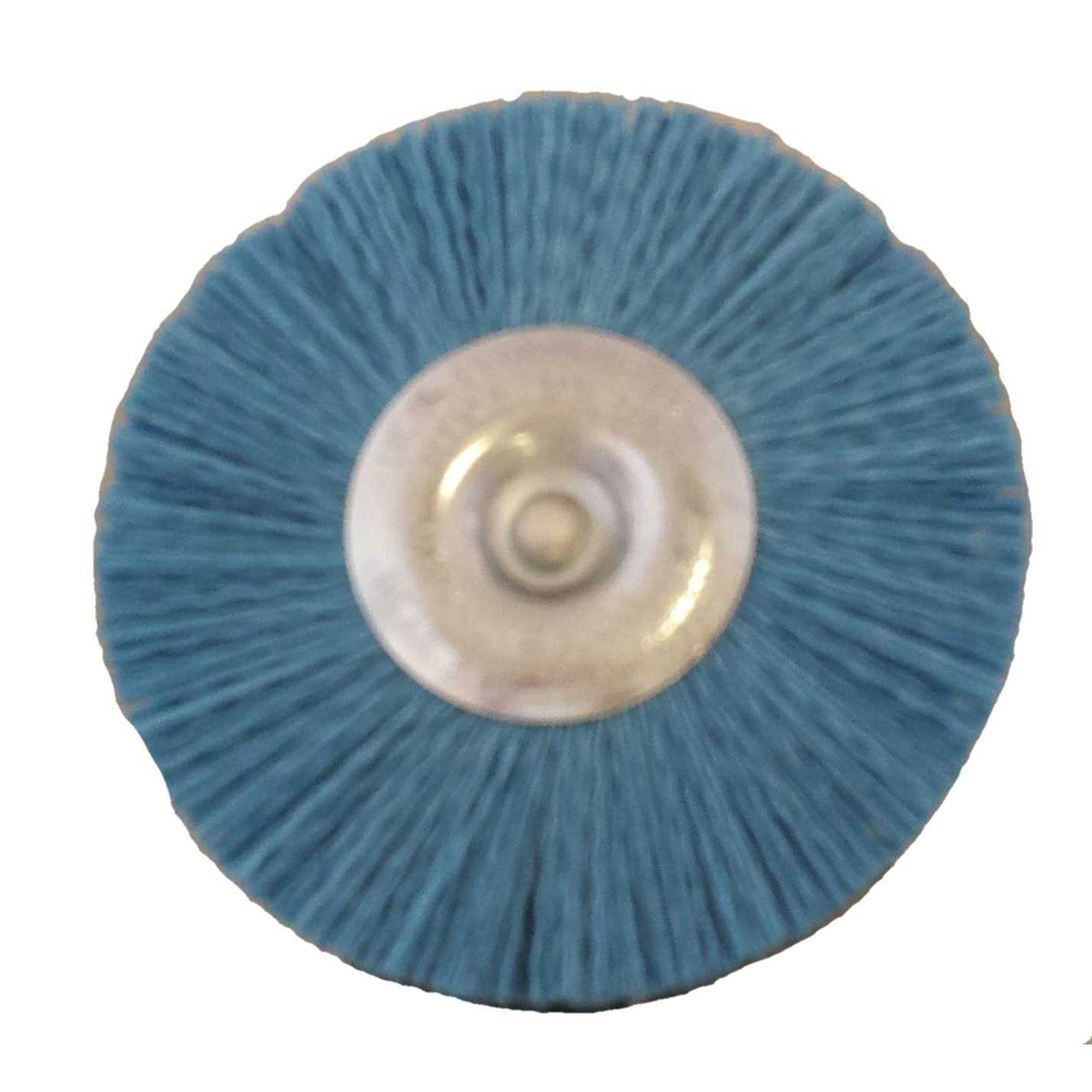 Maintains shape and will not rust. Will not shed bristles under normal conditions. Abrasive grit is impregnated throughout each bristle. Safer to use, will not puncture skin. 3 in and 4 in Mandrel mounted wheel brushes, ideal for getting into crevices and contours. Applications: removing paints, corrosion, weld scale, surface rust and burns from metals. Prepare plastic, fiberglass and rubber surfaces for adhesives. Preparing metal surfaces for primers and paint. Cleaning unfinished tile, stone, cement and brick mortar. Removing old paint and finishes from wood. Cleaning and sanding wood turnings, railings, banisters, trim and molding. Rounding and blending edges, cutouts and joinings.