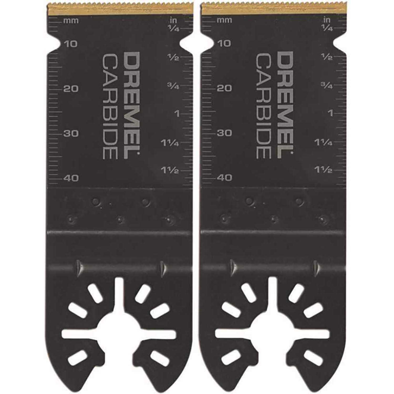 The Dremel MM462 Wood and Metal Flush Cutting Blade will make cutting doorjambs and baseboards for flooring installation a breeze. Used for precise cuts and plunge cuts, its wide blade speeds through long cuts and can make plunge cuts up to 1-1/4 inches deep. Designed for cutting wood, drywall, plastic and soft metal like copper and 6d-8d finishing nails. The blade’s tooth pattern similar to a standard hacksaw blade.