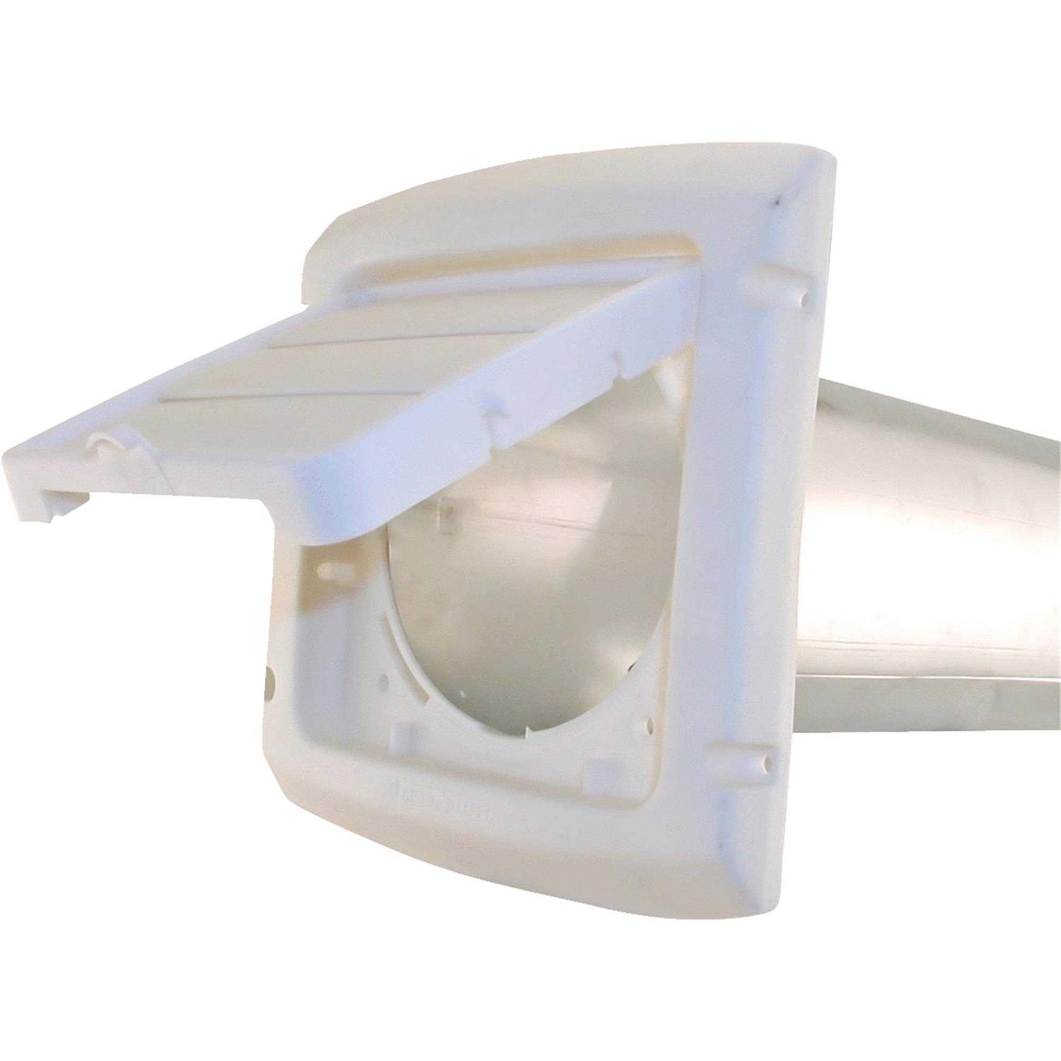 The EzAccess exhaust hood features a hinged louvered damper system that not only prevents cold air, snow or rain from entering the home but also enables the cap to open safely and easily. The cap locks in the open position for easy inspection and removal of lint and debris. Additional features include a recessed caulk line to assist in a clean caulking application and a snap-on pipe to cap assembly that eliminates the need for lint trapping staples. All EzAccess products have a UV-resistant coating to prevent the cap from discoloring and are paintable to match the exterior of your home. These hoods can be used in conjunction with brick, concrete or siding.